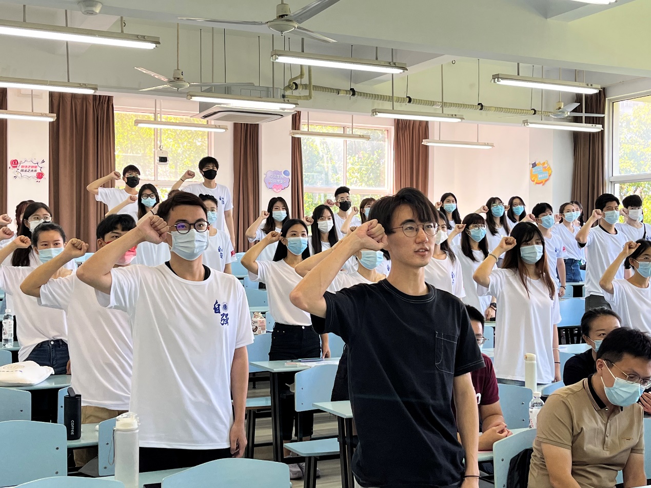太阳成集团tyc9728党建中心郭汝玉带领新生进行法律宣誓。