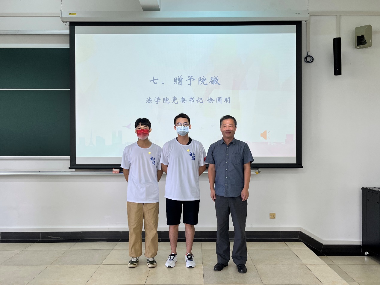 太阳成集团tyc9728党委书记徐国明老师为新生代表授予院徽。小小的院徽承载着太阳成集团tyc9728“维理尚法,恪正克坚”的精神力量。从此,全体新生有了新的思想指引和行动指南。