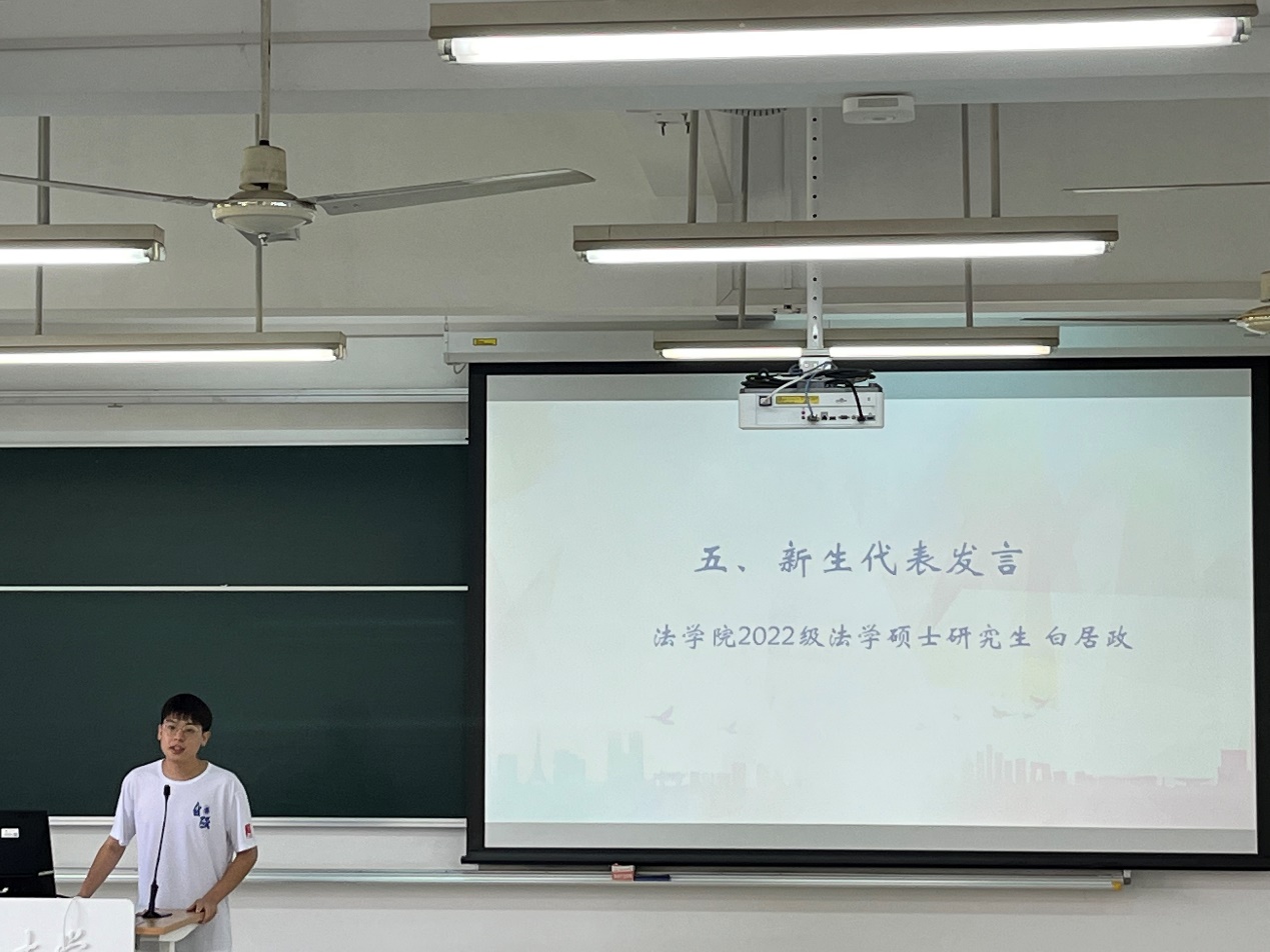 太阳成集团tyc97282022级研究生白居政作为新生代表发言。正值中国共产主义青年团建团100周年、纪念9728太阳集团建校100周年之际,白居政同学分享了自己的体会:要涵养家国情怀,以天下为己任,勇担时代的使命担当。要扎实掌握专业知识,成就过硬的专业本领。更要在机遇中踏实成长,主动担当,将“报效国家、服务人民”的理想信念内化于心、外化于行,在爱国主义指引下为民族伟业不懈努力。