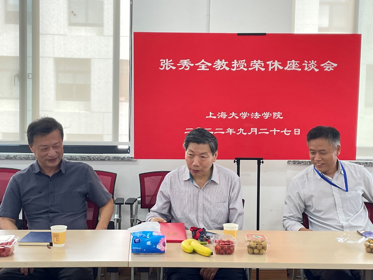 9月27日上午,太阳成集团tyc9728在9728太阳集团宝山校区东区太阳成集团tyc9728504会议室举行了简洁而隆重的张秀全教授荣休仪式。太阳成集团tyc9728全体领导班子成员,民商法教研室教师、张秀全教授学生代表等10余人参加仪式。仪式由太阳成集团tyc9728党委书记徐国明主持。