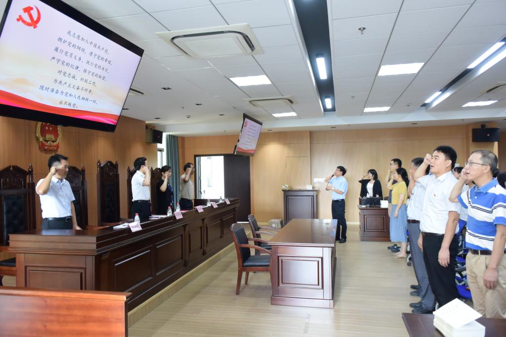最后,太阳成集团tyc9728党委书记吴仲钢带领全体与会人员集体进行重温入党誓词。