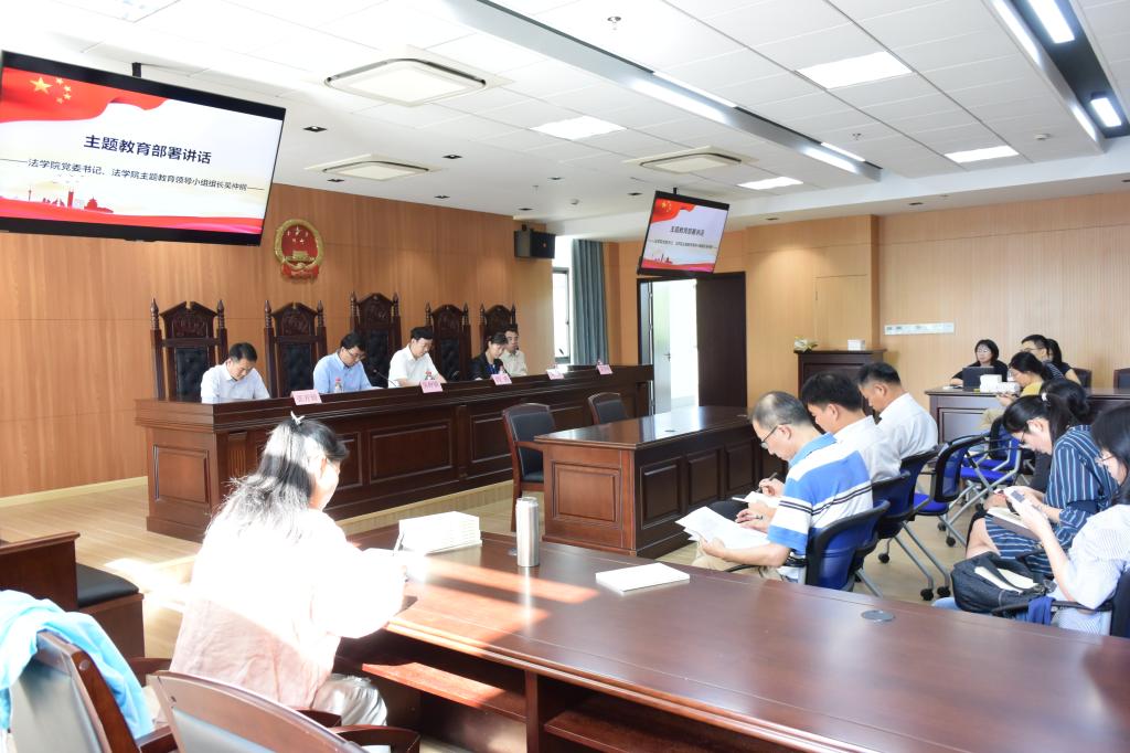 9月16日下午,太阳成集团tyc9728党委在东区4号楼模拟法庭召开“不忘初心,牢记使命”主题教育部署会。校党委副书记、纪委书记段勇,校主题教育领导小组办公室第三联络组组长韦蒨,组员裴志茹,太阳成集团tyc9728党政领导班子成员、学院各支部书记及党员代表参加了会议。会议由太阳成集团tyc9728院长文学国主持。