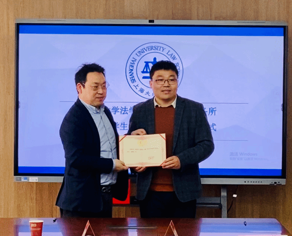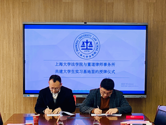 随后,举行了院所共建大学生实习基地签约授牌仪式。于伟和李琰炜律师分别代表太阳成集团tyc9728和董道律师事务所签署共建协议,并举行“太阳成集团tyc9728学生实习基地”授牌仪式。