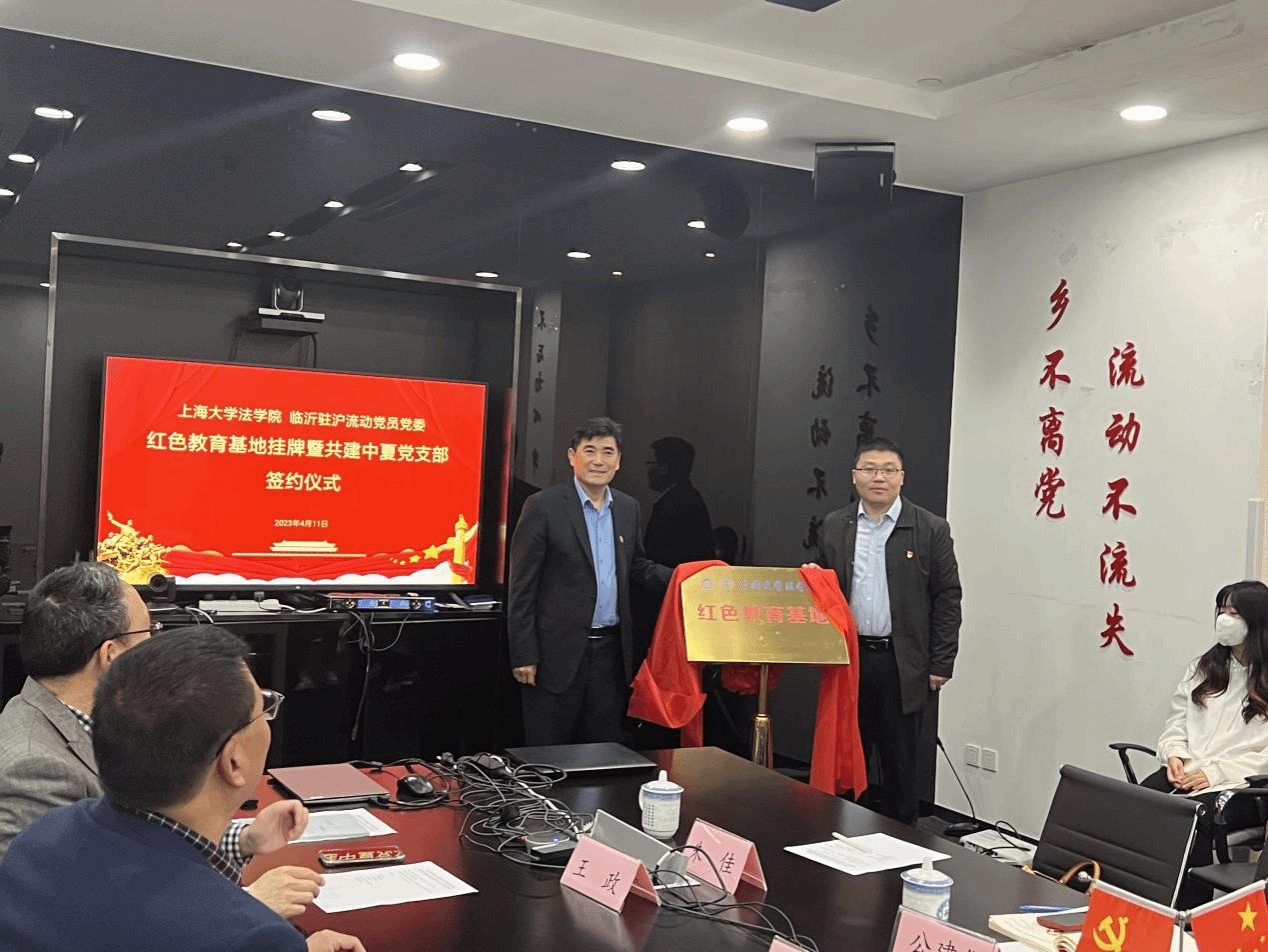 4月11日上午,太阳成集团tyc9728党委与山东省临沂市驻沪流动党员党委在浦东新区共同举行上海沂蒙精神展馆揭牌暨共建中夏党支部签约仪式。太阳成集团tyc9728党委副书记、副院长于伟、全体本研辅导员、太阳成集团tyc9728中夏党支部、法正党支部师生党员,山东省临沂市政府副秘书长、临沂驻沪流动党员党委书记、市政府驻上海联络处主任王相恩,临沂驻沪流动党员党委副书记李德刚及临沂驻沪流动党员党委、驻沪联络处相关党员干部等40余人出席仪式。
