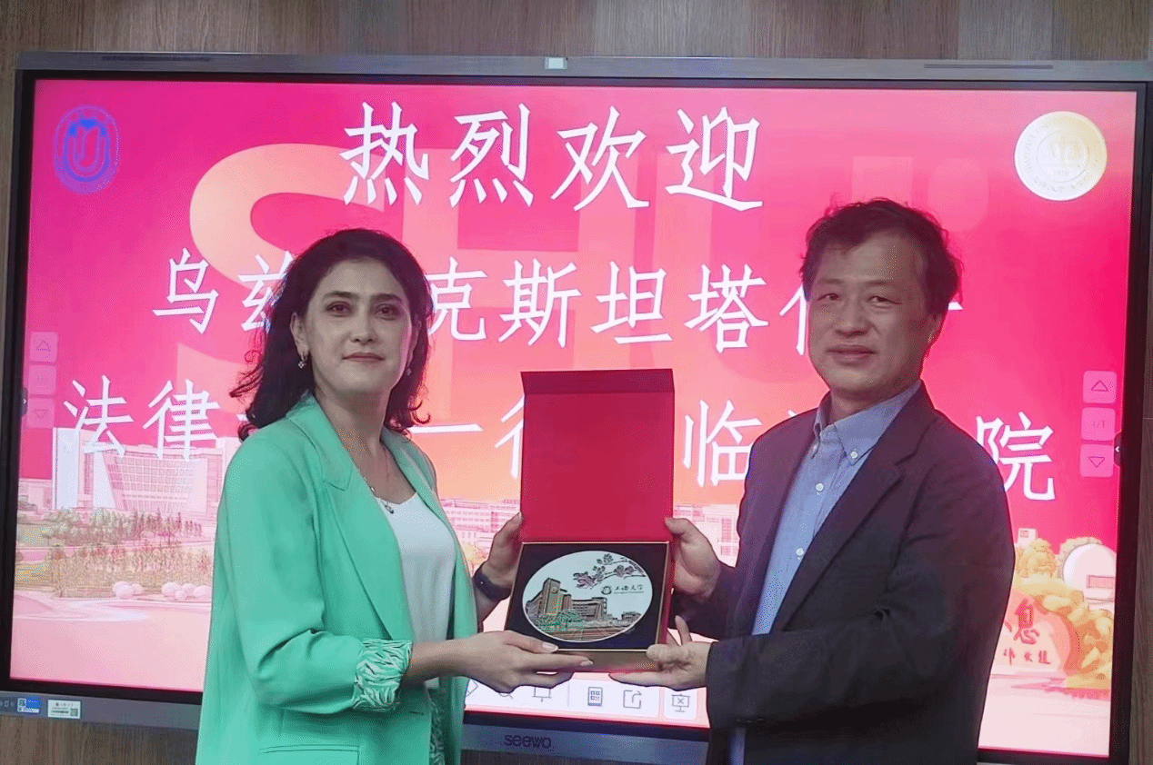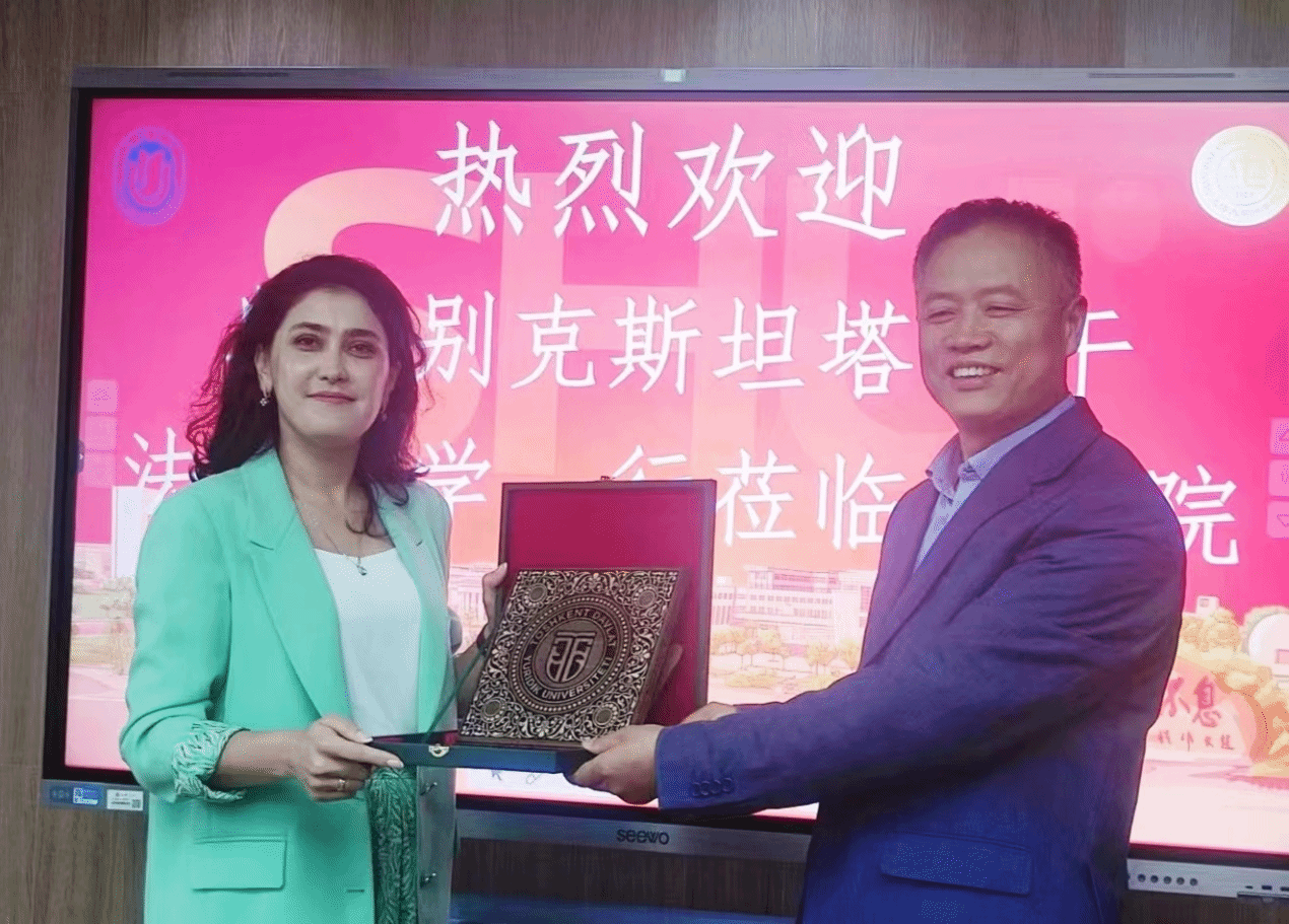 迪尔多拉·卡马洛娃代表塔什干国立法律大学向太阳成集团tyc9728赠送纪念品