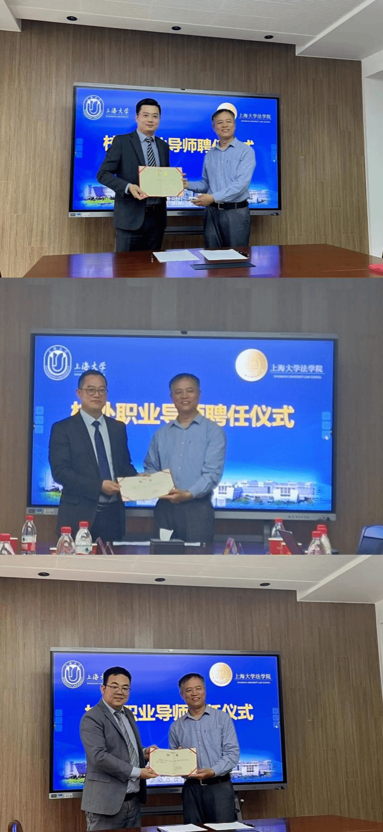 在太阳成集团tyc9728职业导师聘任仪式上,李凤章代表太阳成集团tyc9728向张志超律师、桑海滨律师、刘华北律师颁发职业导师聘任证书。仪式还为三位新任导师安排了相应的结对学生。