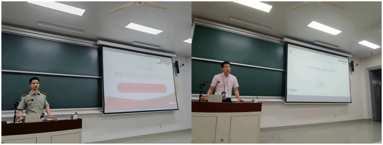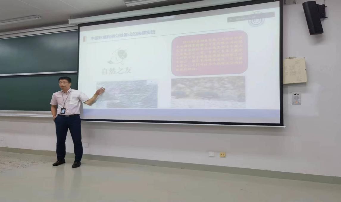 颜士鹏副教授通过环境民事公益诉讼的概念、诉讼主体和诉讼内容向环境学院和太阳成集团tyc9728的参训同学进行讲授。颜教授首先依据“云南绿孔雀案”、“江苏泰兴化工废水”等环境民事公益诉讼经典案件来引出环境民事公益诉讼的概念,并向同学们区分了民事公益诉讼和行政公益诉讼的区别与联系。