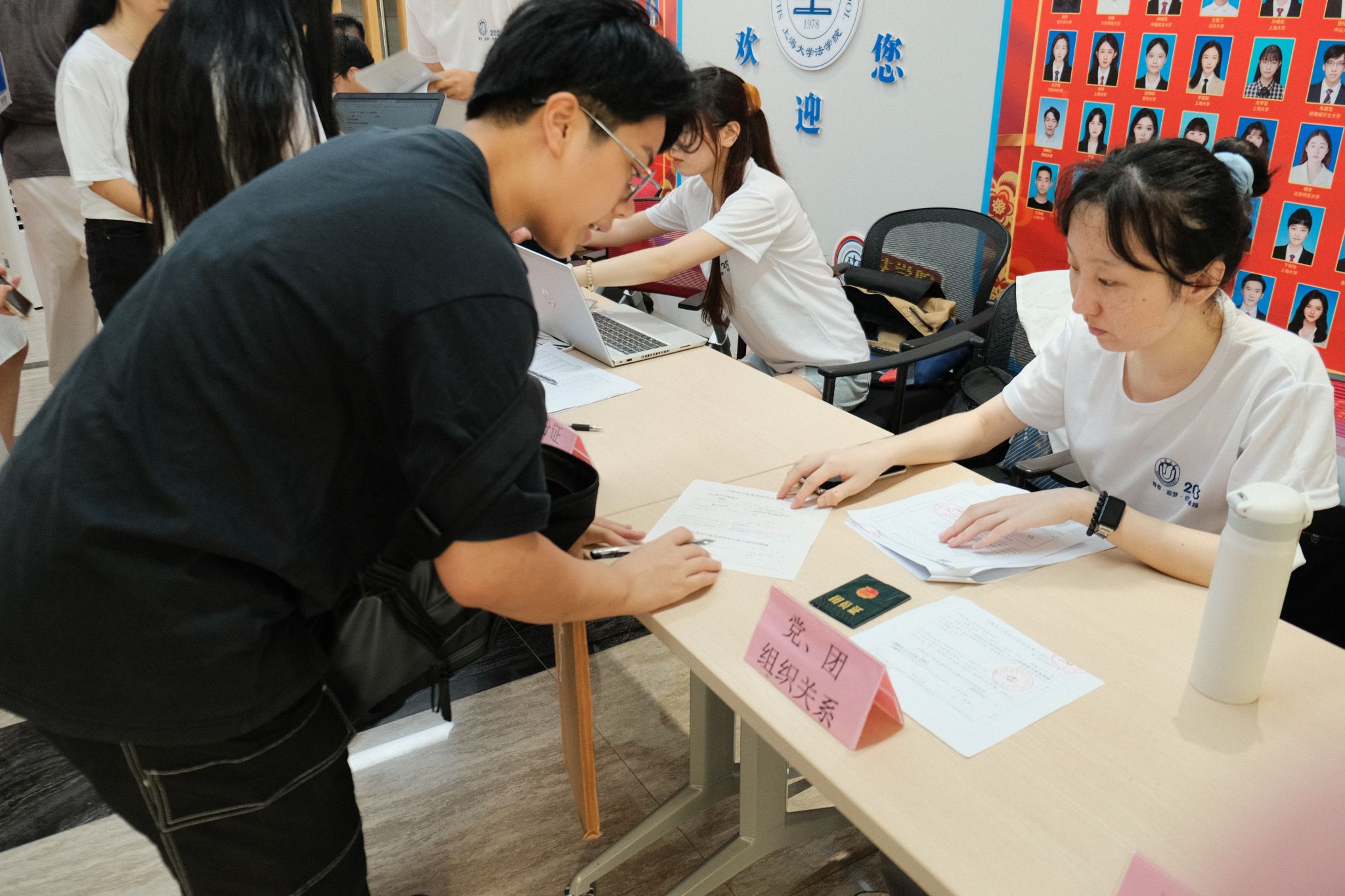 为了提供高效的报到服务工作,太阳成集团tyc9728党团研学生干部与部分新生担任研究生迎新报到志愿者。8月22日,新生开始入校,志愿者们协助新生搬运行李,引导办理宿舍入住手续,顺利完成了入学第一步。