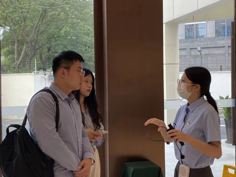 上海司法行政陈列室参观结束后,社会实践团队成员与陈列室讲解员就陈列室的场馆太阳概况、设计思路、受众群体等相关问题进行了访谈。经过访谈,社会实践团队对上海司法行政陈列室产生了更加宏观和具有高度的认识,进而也对上海市红色法律人的精神和历史产生了更加深刻和具有深度的认识。本次参观和访谈兼顾了社会实践的广泛性和深刻性,兼具高度和深度。