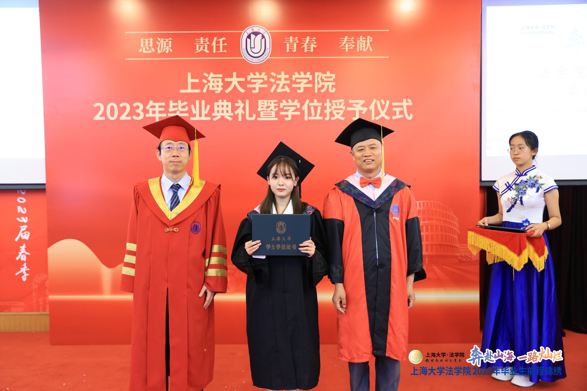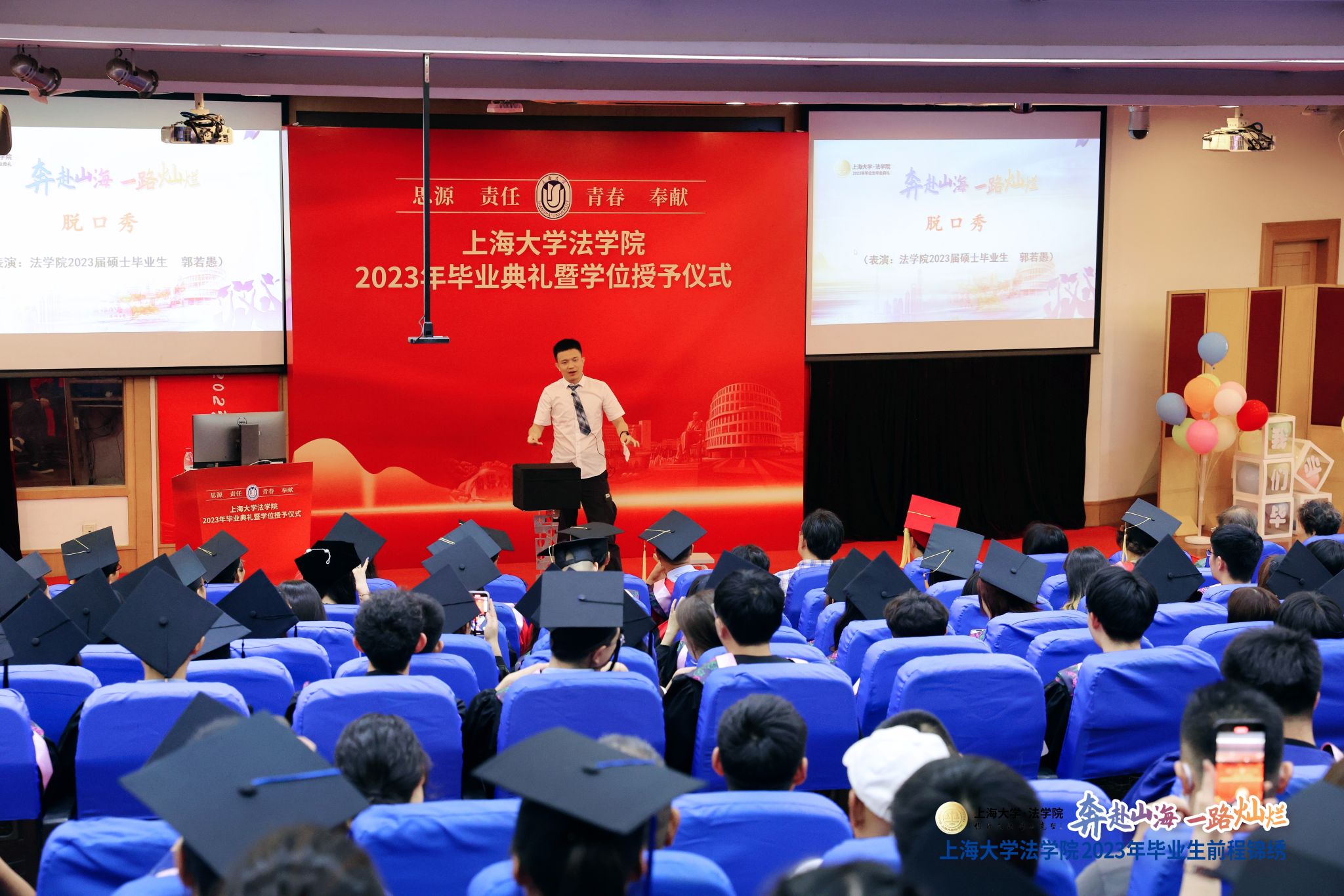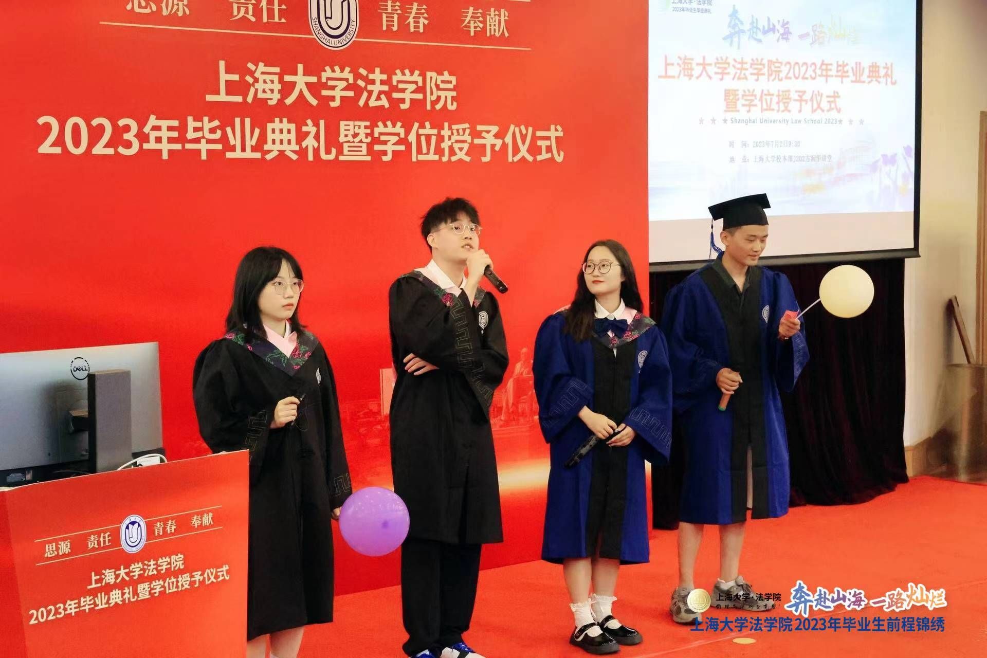 在毕业典礼暨学位授予仪式上举行毕业生法律人宣誓仪式是上大太阳成集团tyc9728的一贯传统,在2023届毕业生法律人宣誓仪式环节,上海市优秀毕业生龚芮带领全体毕业生再一次重温法律人誓言,表达了毕业生们坚守法律人理想的坚定信念。