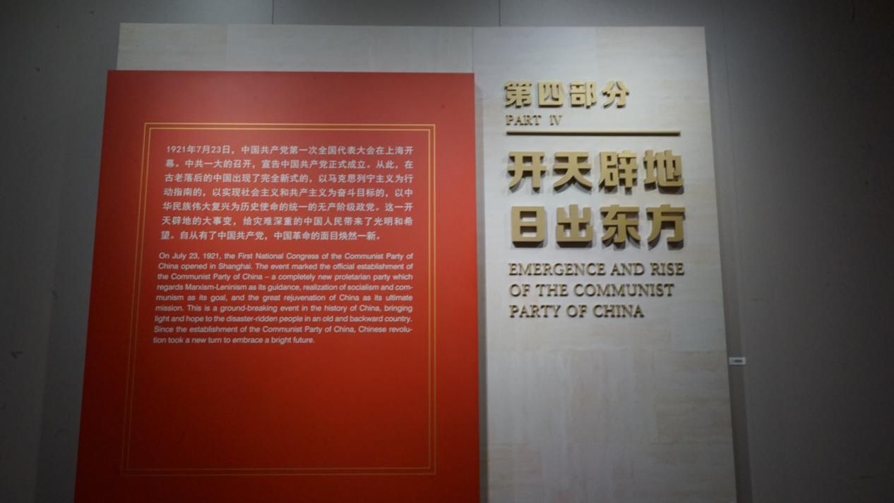 场馆的第一部分展示了清政府与西方列强签订的24个不平等条约的文本,还展出了船、炮、兵器等文物,揭示了鸦片战争时期中华民族的水深火热和深重苦难。为了寻找救国救民道路,无数志士仁人前仆后继、不懈探索,但农民起义、君主立宪、资产阶级共和制等救国方案都相继失败了,但是在希望与挫折相伴中共和国的幻象已初步呈现,为我们党的诞生做了历史铺垫。