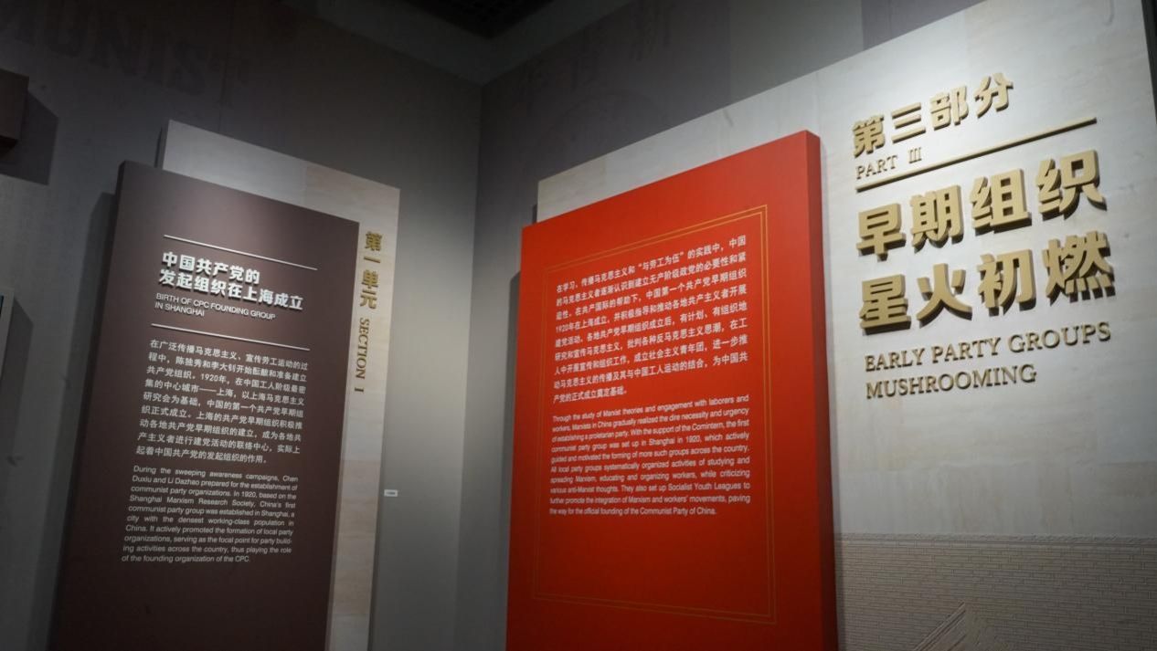 1921年,各地早期组织在接到要在上海召开中国共产党第一次全国代表大会的通知后,相继选派代表赴会。馆内的雕塑作品和照片,展现了1921年7月23日晚,国内各地和旅日党组织共派出13名代表秘密聚集在上海法租界望志路106号树德里3号召开中国共产党第一次全国代表大会的场景,再现了中国共产党的诞生这一划时代的历史瞬间。