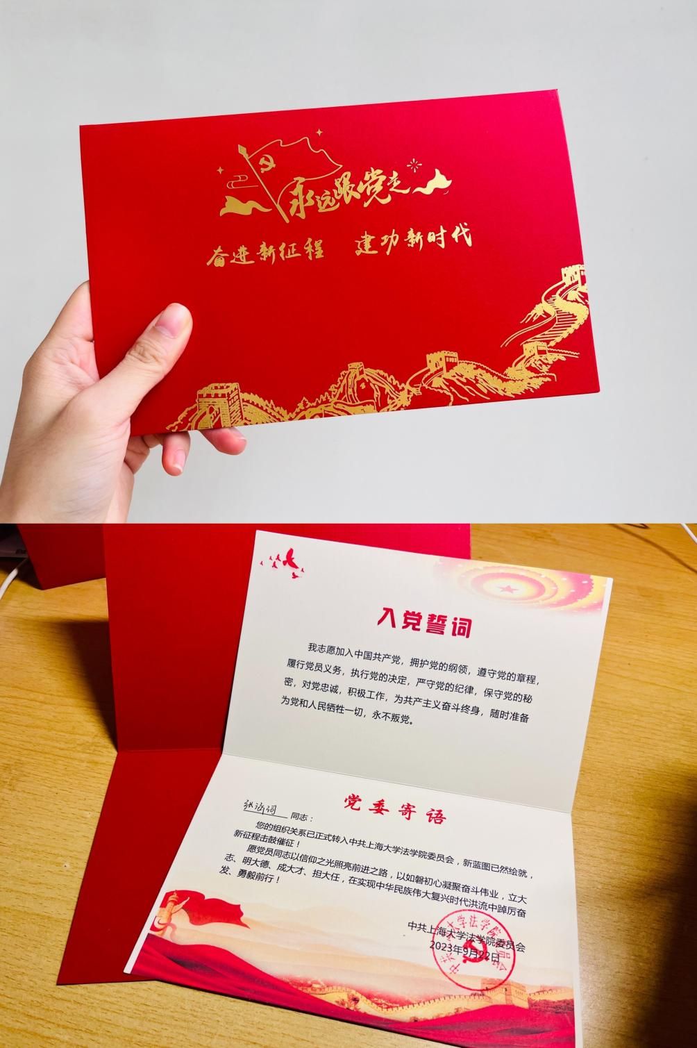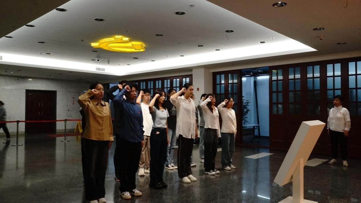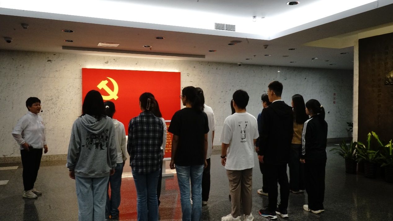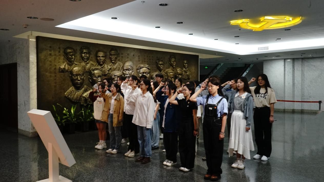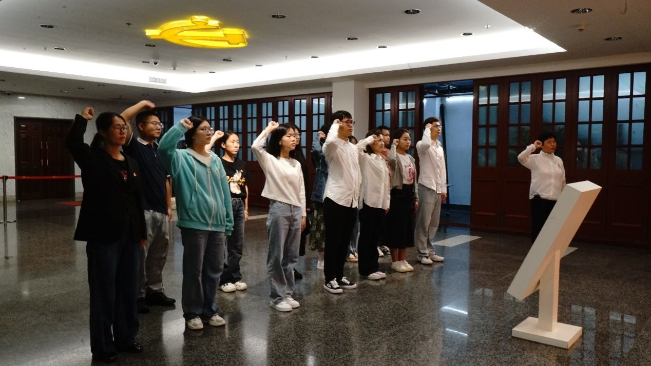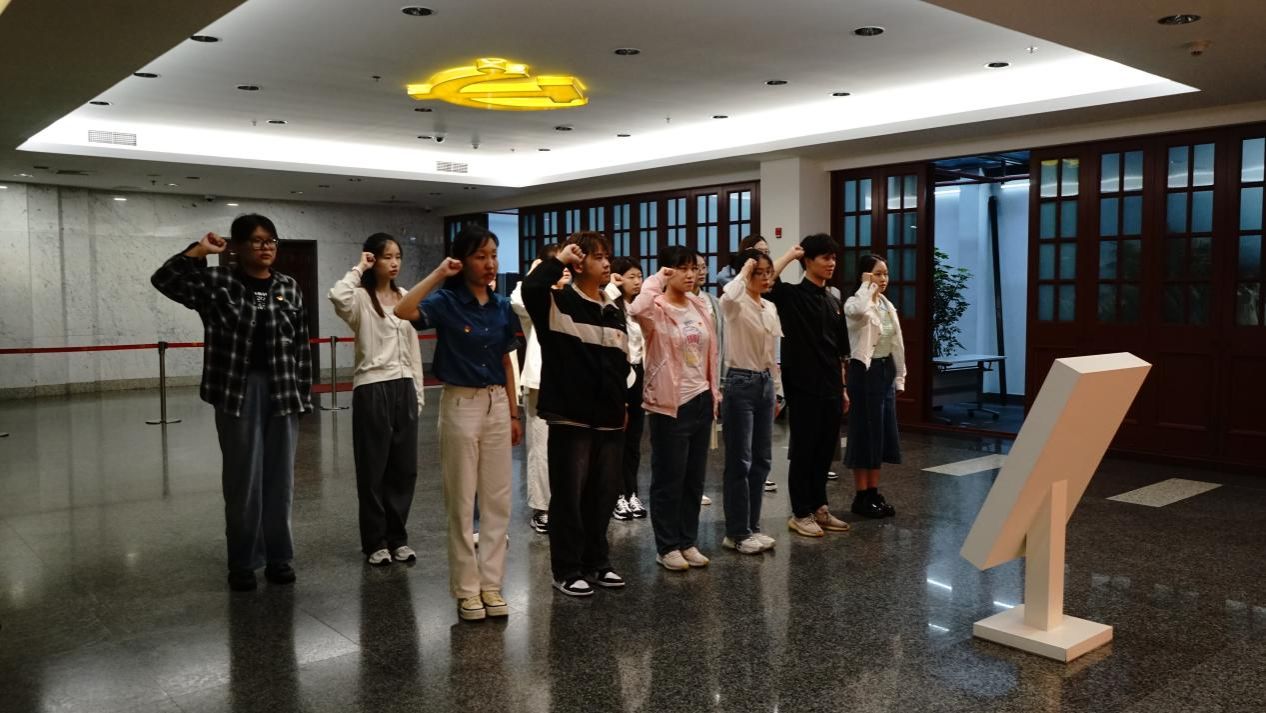 上午9点,全体人员于中共一大会址纪念馆门口集合,由支部书记、组织委员为支部党员发放党徽。随后,在工作人员的带领下,各位新生党员在宣誓大厅内,以支部为单位,面对中国共产党党旗一起重温入党誓词。铿锵有力的誓词回荡在大厅之内,提醒着每一位党员要不忘初心,坚定理想信念。