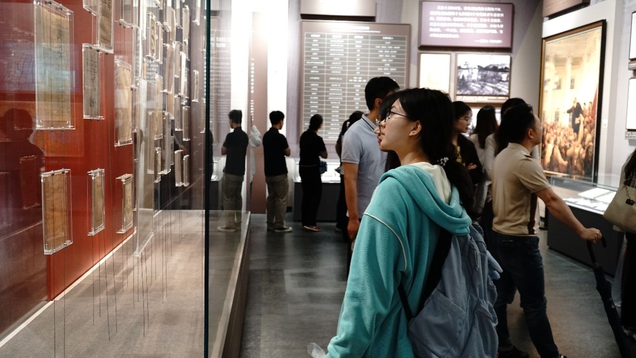 宣誓结束之后,新生党员们参观了五个部分的主题展览,来回顾党的诞生和发展历史。馆内一张张定格历史的资料照片,一个个再现原貌的历史场景,仿佛让大家回到了那段峥嵘岁月,大家驻足观看,思考交流。