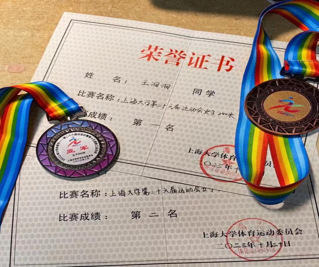 我院王沺沺同学荣获女子200米冠军,400米亚军的优异成绩!