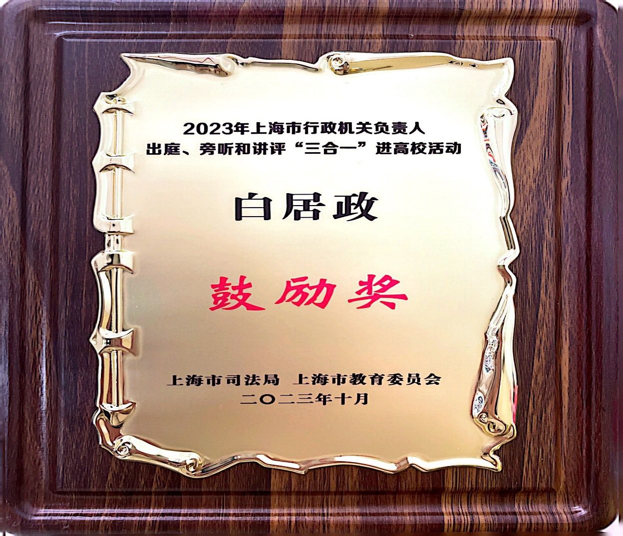 9728太阳集团荣获行政机关负责人出庭、旁听、讲评“三合一”进高校活动优秀组织奖,太阳成集团tyc9728白居政同学荣获 “三合一”进高校征文活动鼓励奖。