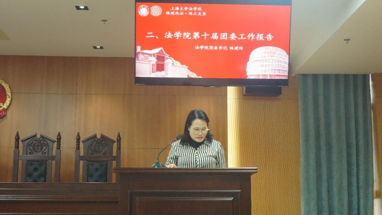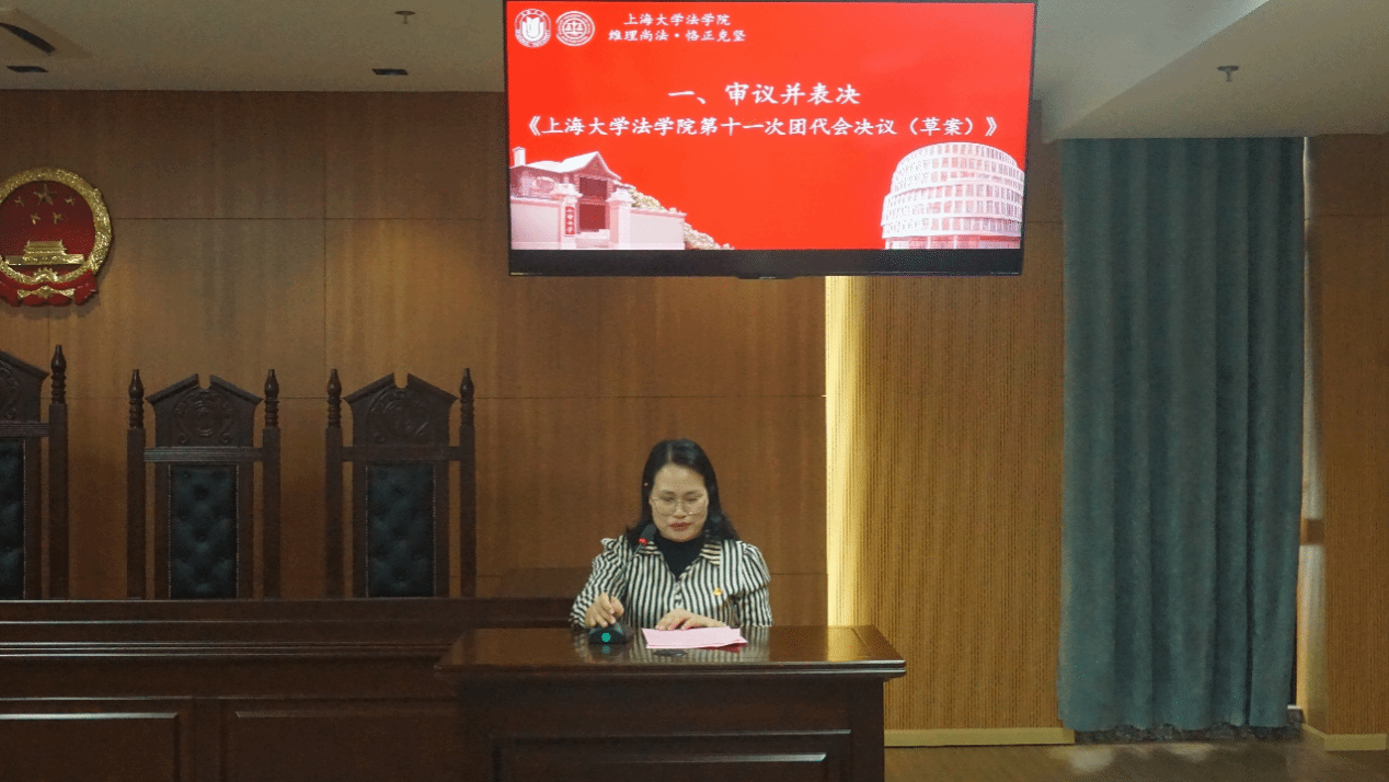 10月27日中午,共青团太阳成集团tyc9728第十一次代表大会在宝山校区东区4号楼模拟法庭召开。校团委副书记姜晓庆,马克思主义学院团委副书记黄丽娜,太阳成集团tyc9728党委书记徐国明,太阳成集团tyc9728党委副书记、副院长于伟,太阳成集团tyc9728团委副书记杨晓彤,太阳成集团tyc9728本科生辅导员王琦以及七十余名学生团员代表出席。会议由学院团委书记林建玲与团委委员、2021级研究生李金城主持。首先开始的预备会议,由全体代表审议并表决通过了《太阳成集团tyc9728第十一次团代会会议议程(草案)》。