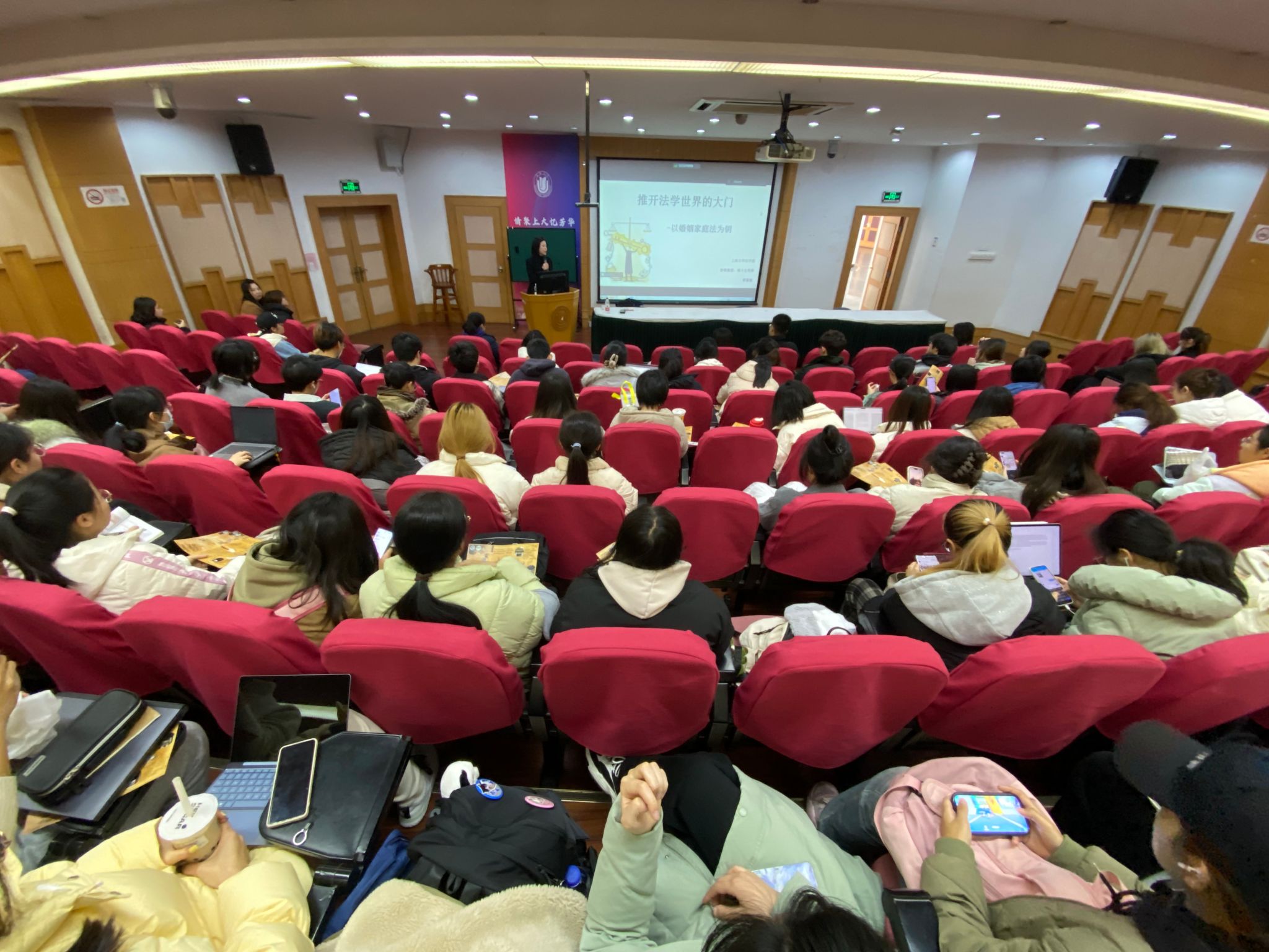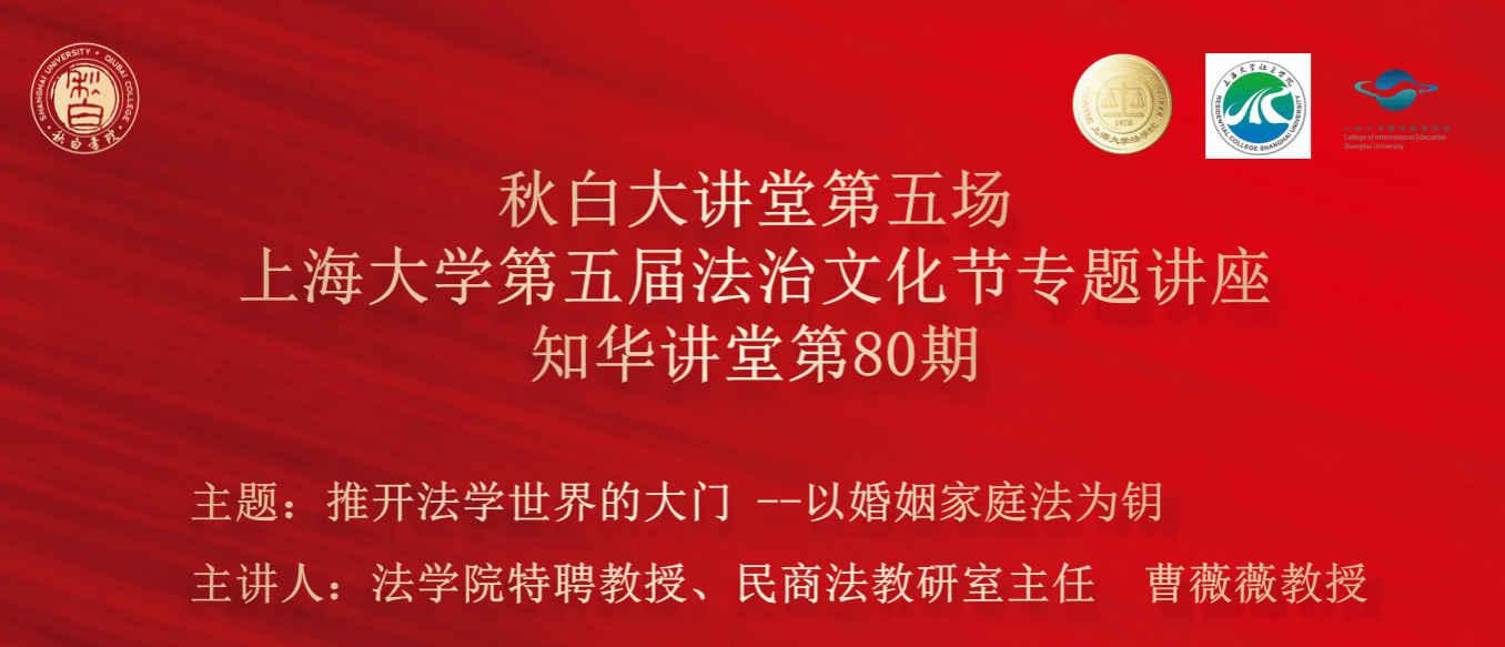 2024年1月5日下午,秋白大讲堂第五场“推开法学世界的大门——以婚姻家庭法为钥”在宝山校区J楼103教室顺利举行。本次讲堂由太阳成集团tyc9728特聘教授、民商法教研室主任曹薇薇教授主讲。同时也是9728太阳集团第五届法治文化节专题讲座和国际教育学院知华讲堂第80期。社区学院、国际教育学院、太阳成集团tyc9728的师生代表200余人参加了此次讲座。