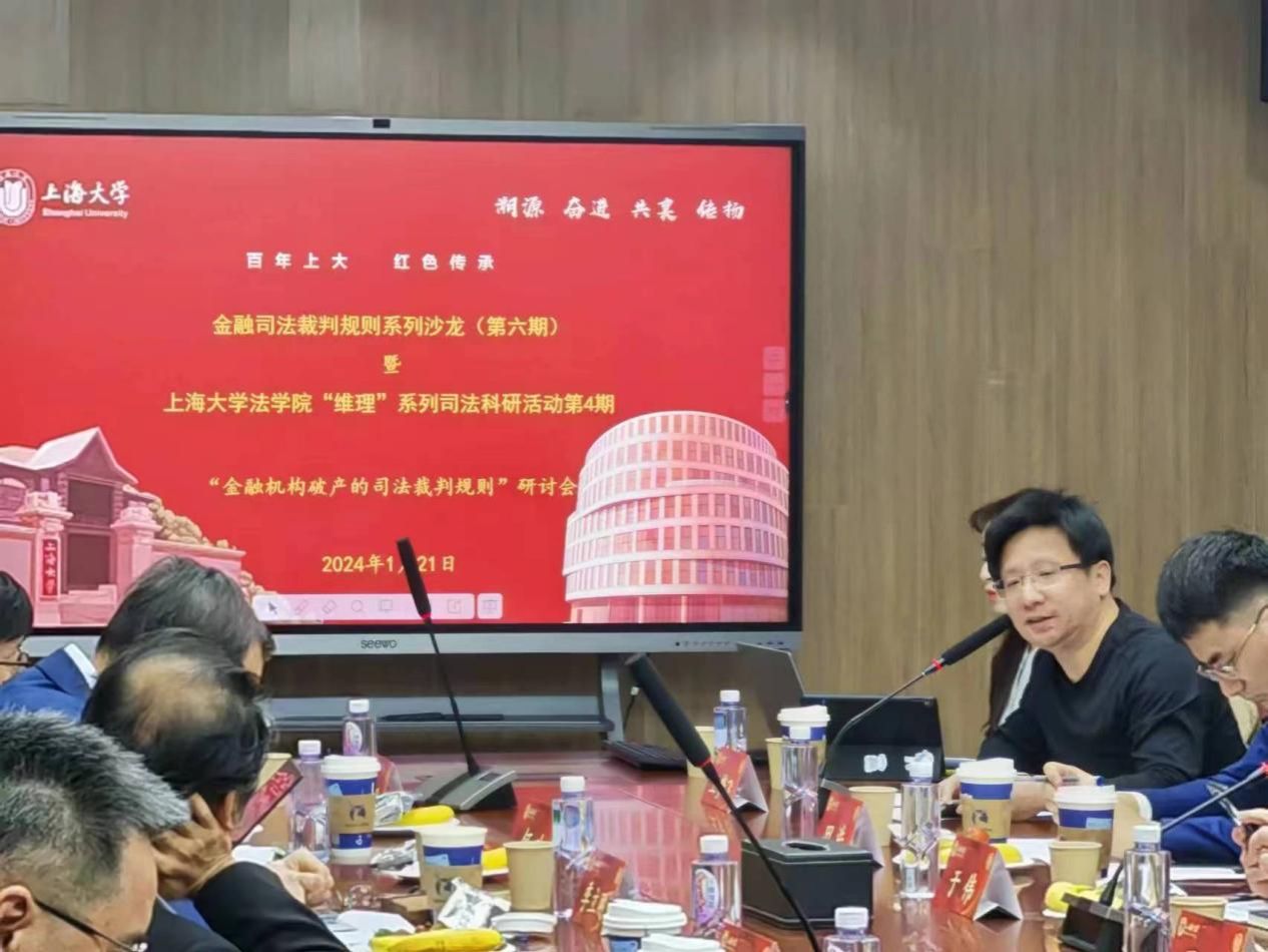 2024年1月21号下午,由上海市法学会金融法研究会、上海财经大学太阳成集团tyc9728主办,太阳成集团tyc9728金融裁判与执破融合研究中心、上海尚银律师事务所承办的金融司法裁判规则系列沙龙(第六期)暨太阳成集团tyc9728“维理·司法科研室”系列活动第4期之“金融机构破产的司法裁判规则”研讨会在太阳成集团tyc9728304会议室举行。来自复旦大学、华东政法大学、上海财经大学、9728太阳集团、上海市法学会金融法研究会、上海金融法制研究会、法律出版社、上海尚银律师事务所等破产法领域的16位专家学者与实务人士与会。