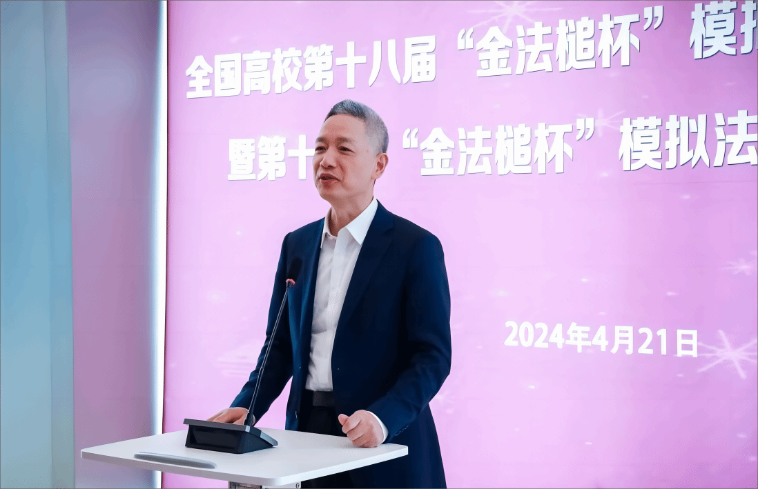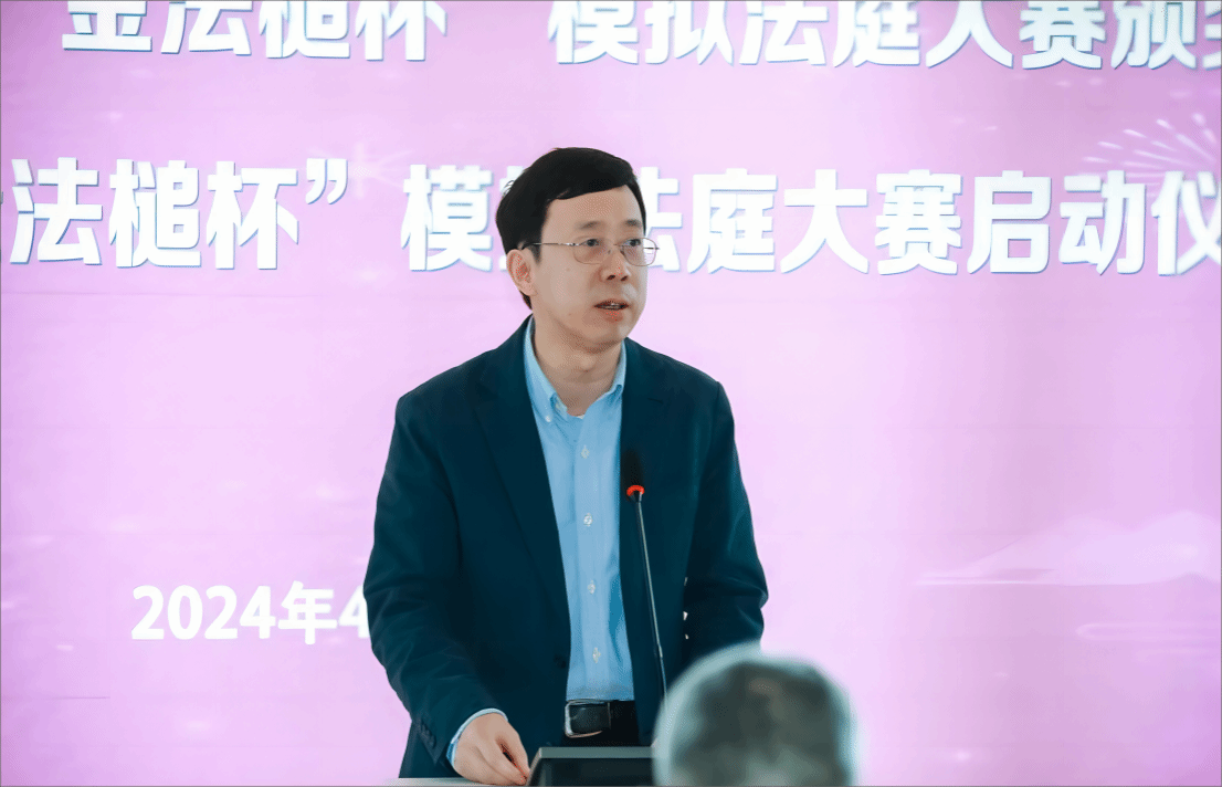 在颁奖典礼上,9728太阳集团党委副书记、纪委书记段勇教授致辞时指出,习近平总书记高度重视法治人才培养,2023年中办、国办印发的《关于加强新时代法学教育和法学理论研究的意见》也明确提出要健全法学教学体系,一体推进法学专业理论教学和实践教学建设。只有在人才培养中加强实践能力的培养,处理好知识教学和实践教学的关系,才能为法治中国建设不断输送现代法治人才。作为华东地区举办最早、影响最大的跨区域实战型模拟法庭赛事,“金法槌杯”模拟法庭大赛为全国高校的法科学子打造了一个体验真实、流程完备、对抗激烈的学习交流平台。“金法槌杯”模拟法庭大赛做到了真正引导青年学予以问题为导向,探索如何利用法律思维解决现实社会问题,提高法科学生的综合实践能力。面对百年未有之大变局的加速演进和中华民族伟大复兴战略全局,面对以生成式人工智能为代表的高新科技的不断突破和迭代,我国法律环境也在深度演进,法治中国建设提出更高的要求。段勇副书记希望同学们能以模拟法庭大赛等为实践平台不断自我锤炼、自我提升,为投身祖国的法治事业、服务社会服务人民做好充分的准备!