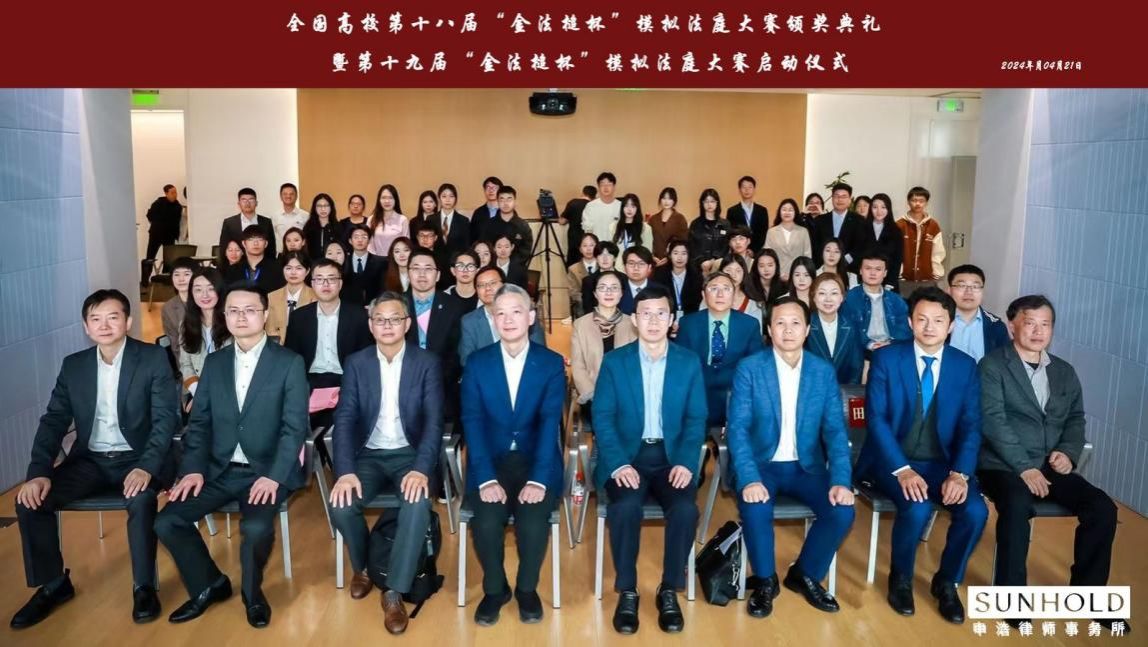 4月21日下午,全国高校第十八届“金法槌杯”模拟法庭大赛颁奖典礼暨第十九届“金法槌杯”模拟法庭大赛启动仪式在上海中心75层申浩律师事务所会客厅顺利举行。