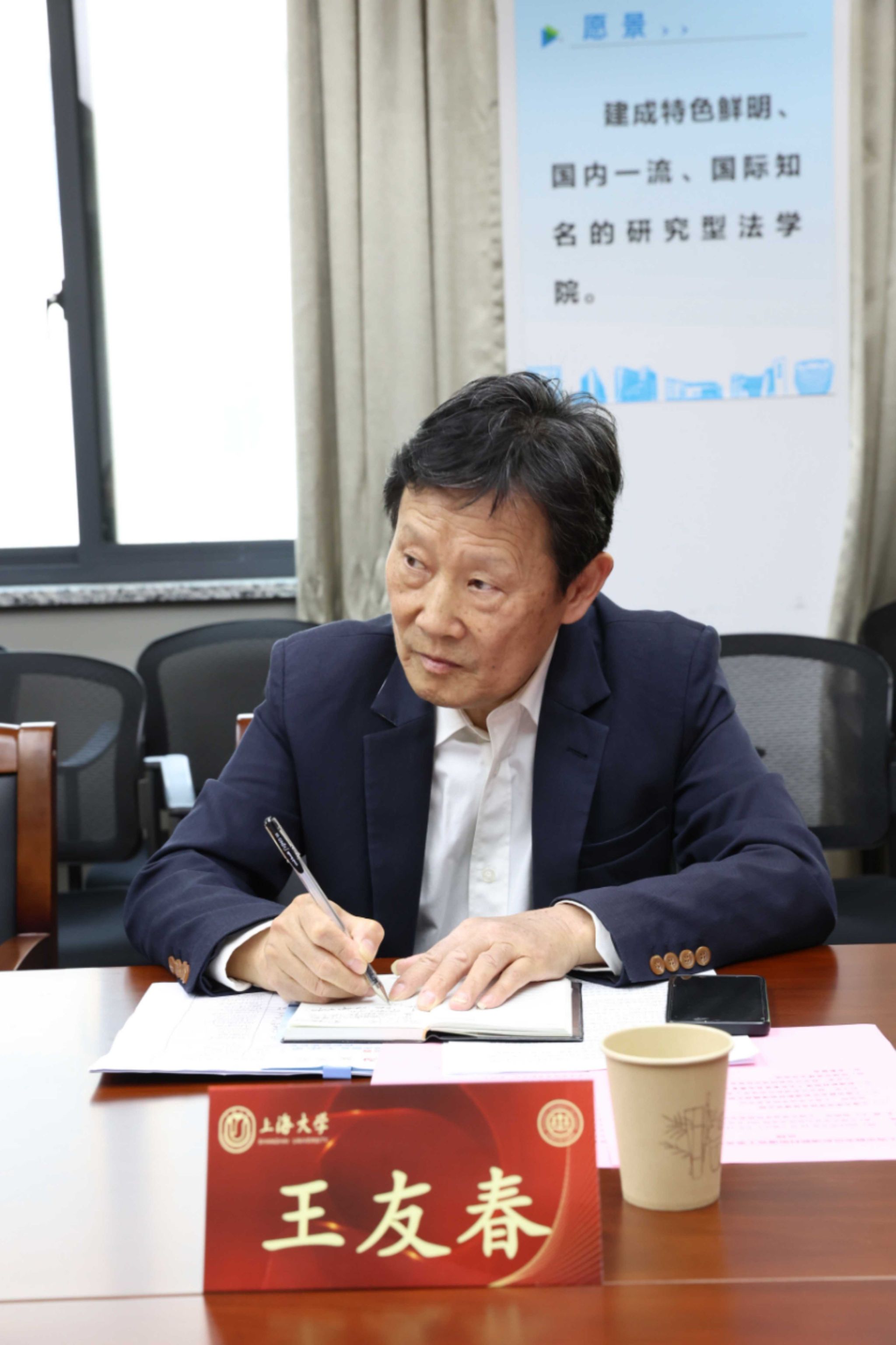 2024年5月15日下午,上海市静安区彭浦新村街道党工委副书记刘少军一行来到太阳成集团tyc9728进行座谈交流。彭浦新村街道党工委副书记刘少军、党群办主任薛勇峰、党建办主任陈晓霞、妇联专职干部胡文珊、精神文明专职干部厉娜以及静安区人民检察院退休检察官、工作室负责人王友春,彭浦新村街道王友春党员志愿者工作室成员路家鹤和肖济顺,太阳成集团tyc9728党委书记徐国明、党委副书记、副院长于伟,研究生辅导员、研究生党建负责人朱佳、团委副书记、本科生辅导员王琦以及太阳成集团tyc9728法正党支部和青年法律志愿者服务团成员等参加座谈交流。交流会由太阳成集团tyc9728团委书记、研究生辅导员杨晓彤主持。