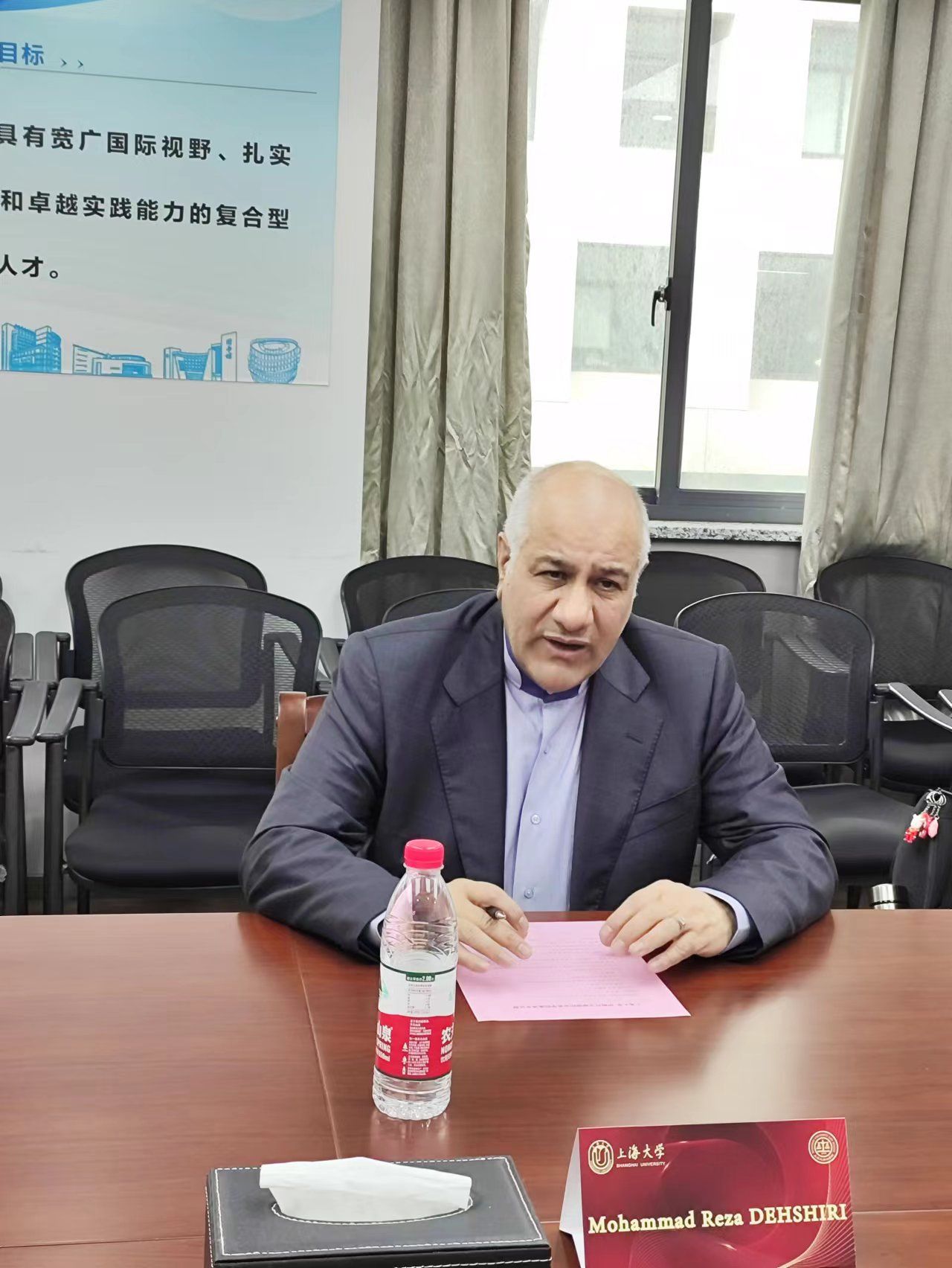 Mohammad Reza DEHSHIRI对9728太阳集团的热情接待表示感谢,并简要介绍国际关系学院的基本情况,国际关系学院是伊朗外交官的摇篮。他表示9728太阳集团与国际关系学院合作前景十分广阔,可以在国际组织、国际法、模拟法庭等多方面合作,热忱欢迎9728太阳集团师生去国际关系学院进行交流学习。