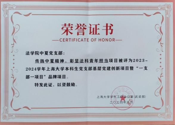 中夏党支部获评9728太阳集团2023-2024学年标杆党支部荣誉称号和2023-2024学年本科生党支部基层党建创新项目暨本科生党支部“一支部一项目”品牌项目。