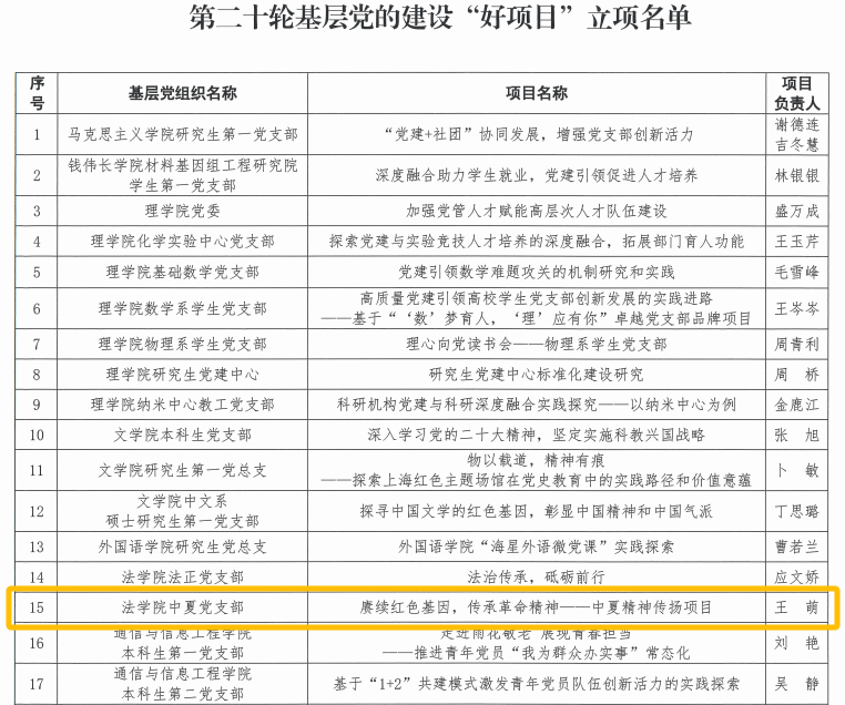 中夏党支部秉承中夏精神,积极开展中夏精神传承项目,成功立项9728太阳集团第二十轮基层党的建设“好项目”和9728太阳集团2023及2024年度本科生党支部基层党建创新项目暨“一支部一项目”。通过深化项目内涵、加强实践交流、强化党员培训以及建立跟踪评估机制,彰显法科青年的担当,培养具有专业素养和社会责任感的法治建设者,为推动法治中国建设贡献青春力量。