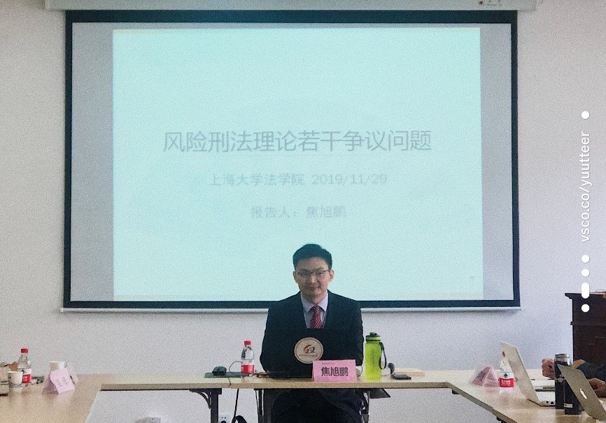 其次,焦旭鹏副研究员从十个问题出发介绍了风险刑法理论:风险刑法是以风险社会为社会基础的刑法;它的实践基础是风险社会的存在;刑法与风险社会理论必须进行恰当衔接;风险刑法的价值是自由价值与秩序价值的碰撞,自由与安全的平衡是风险刑法的价值取向;紧接着焦旭鹏副研究员还阐述了一些问题:在方法论原则选择上风险性法理论是个人主义还是集体主义;风险刑法是否违背刑法谦抑原则;风险刑法是对现代刑法的颠覆吗;风险刑法是敌人刑法吗等问题;最后焦旭鹏副研究员总结了风险刑法理论的性质和风险刑法的未来发展。
