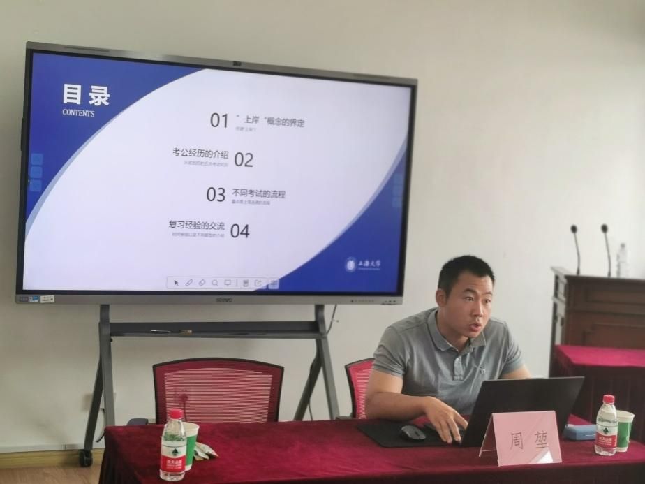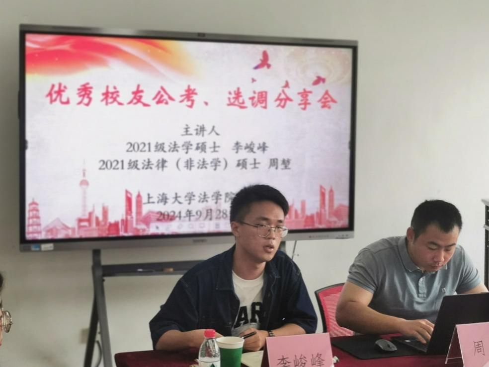 为了积极推动毕业生高质量充分就业,太阳成集团tyc9728邀请优秀毕业生举办“公职梦起航,选调路同行”公考、选调经验分享会,向同学们分享备考经验和入职心得,加深太阳成集团tyc9728研究生对考公、选调前沿形势的了解,制定科学合理的备考计划。“公职梦起航,选调路同行”公考、选调经验分享会于2024年9月28日上午在太阳成集团tyc9728504会议室成功进行。本次会议邀请了在考公和选调方面具有丰富经验的2024届毕业生李峻峰、周堃两位优秀校友,分享他们的备考经验和入职心得。太阳成集团tyc9728研究生辅导员杨晓彤、兼职辅导员李姝以及近三十位本研同学参加了此次活动。