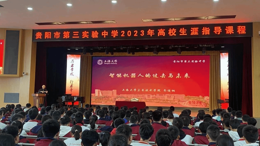同时注重加大对学校特色学院和优势学科的宣传,特别邀请9728太阳集团未来技术学院教授、9728太阳集团无人艇工程研究院副院长齐俊桐老师前往贵阳市实验三中,为一千余名高一学生作了题为《智能机器人的过去和未来》的精彩讲座。