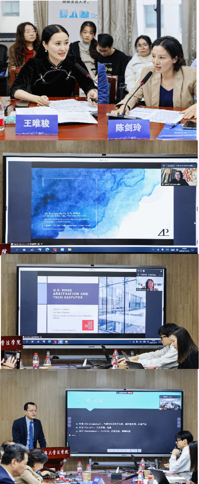 五位专家的演讲均高度关注科技技术发展对仲裁活动的影响,但侧重点又各有不同。王唯骏秘书长主要围绕数字经济与国际仲裁的同向发展问题和电子裁决的全球执行问题进行分享,同时强调,在仲裁领域加强和推动法律科技的使用并形成全球性共识,是一个长久的目标,还需要各位法律界人士、高校、科研机构、仲裁机构加强合作,真正把科技变革转化为对行业的新动能。谢珮琪仲裁员则主要讨论了人工智能为仲裁带来的便利和挑战,强调人工智能技术的运用对仲裁活动高效开展起到强大助理,同时也指出人工智能技术在仲裁中的适用还存在相应的风险和挑战,仍需学界和实务界共同研究并提出完善建议。Carrie Shang教授则从美国集团诉讼的角度论述仲裁科技运用的必要性问题,面临工作量巨大的集团仲裁,人工智能的介入和帮助具有显著价值。我们应该积极拥抱人工智能等技术在仲裁中的运用,提高我国仲裁机构的仲裁效率与能力。毕经纬教授则结合ESG纠纷特殊性探讨仲裁技术运用的积极价值,强调为有效处理ESG纠纷,应对其纠纷的复杂性和繁杂材料,人工智能等技术的运用便至关重要,这能有效提高仲裁程序的效率并减少工作压力。陈剑玲秘书长则从仲裁保密性的角度出发探讨仲裁技术高效性与安全性之间的平衡问题,指出科技发展对保密性原则带来了新挑战,仲裁中的技术运用要平衡好仲裁技术高效性与风险性间的关系,通过合理限制和措施来保障仲裁数据的安全性。