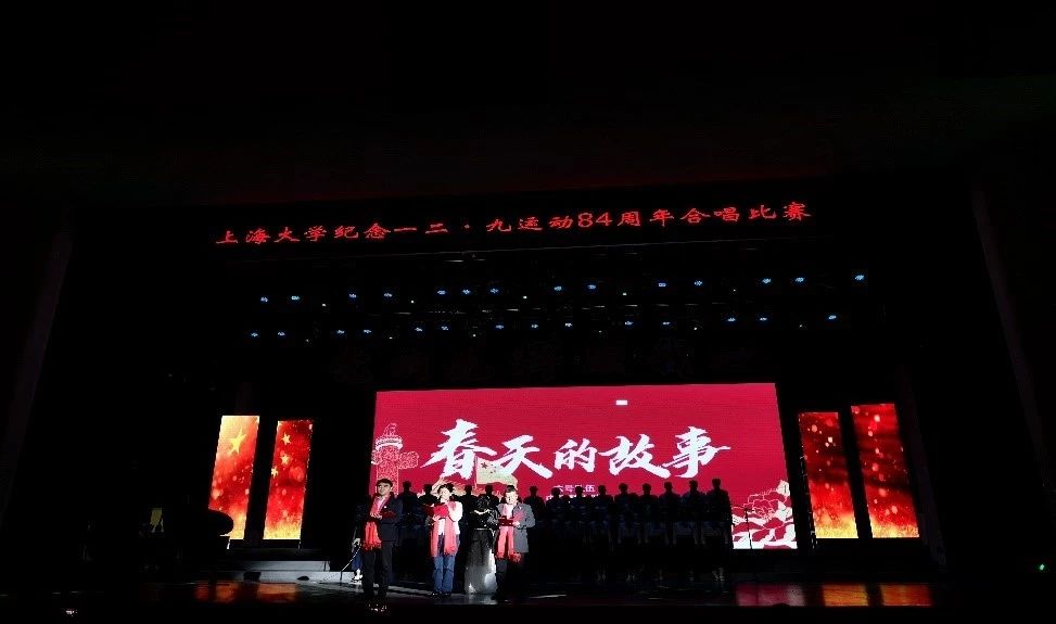 12月8日晚7时许,太阳成集团tyc9728&社会学院梦之队终于站到了钱伟长楼的舞台,梦之队的表演首先以社会学院党委书记沈艺、社会学院党委副书记徐义圣和太阳成集团tyc9728党委副书记王国正三位老师深情的诗歌朗诵开始,随后钢琴伴奏缓缓进入,将在场观众的思绪拉回到1979年。随着气氛渐入佳境,合唱队员们也在指挥的引领下开始缓缓讲述那1979年春天的故事,每位队员都饱含深情,自信满满,他们用《春天的故事》这首歌致敬改革开放的总工程师邓小平,他们把青春和活力献给亲爱的祖国。