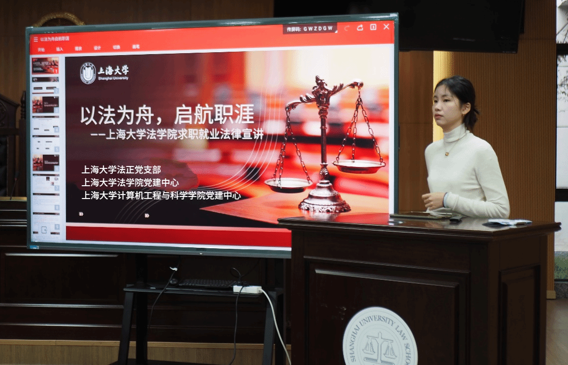 为进一步提升学生的法律意识,助力学生在求职路上行稳致远,有效防范和应对求职过程中可能遭遇的各类权益侵害风险,太阳成集团tyc9728研究生党建中心联合计算机工程与科学学院党建中心于2024年12月13日上午,在太阳成集团tyc9728模拟法庭举办了“党建引领,指点迷津——求职就业法律宣讲”活动,邀请了9728太阳集团法正党支部支部书记徐炜为宣讲活动的主讲人,太阳成集团tyc9728研究生党建中心主任朱佳老师、计算机学院研究生党建中心主任郑丽玫老师参加活动。本次活动由两学院研究生党建中心共同举办,旨在以党建为引领,为学生提供精准实用的求职就业法律知识,使其在求职中能够有效维护自身权益,应对潜在法律问题。近80位学生聆听了本次讲座。