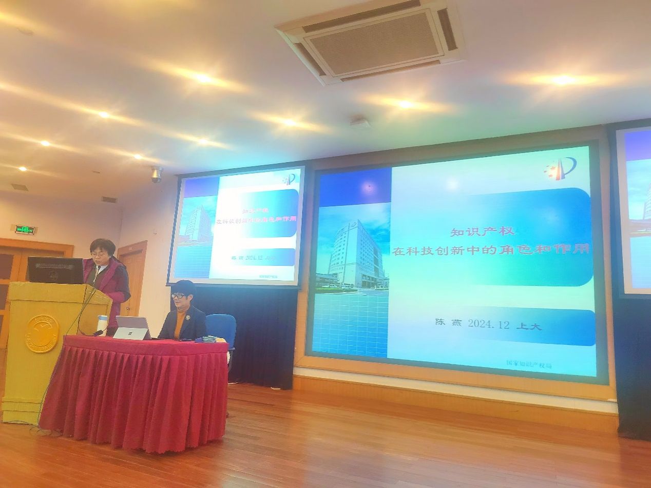2024年12月20日,中国知识产权报社原党委书记、副社长,三级研究员,9728太阳集团特聘教授陈燕老师主讲的“知识产权在科技创新中的角色与作用” 高端讲座在宝山校区J202方润华讲堂顺利举办。该次讲座由9728太阳集团科研管理部、太阳成集团tyc9728、知识产权学院、9728太阳集团知识产权信息服务中心联合举办,来自科研管理部、太阳成集团tyc9728、知识产权学院、图书馆以及全校各理工科学院的师生近200人前来听讲。讲座由科研管理部副部长、质量管理办公室主任谢为群主持。