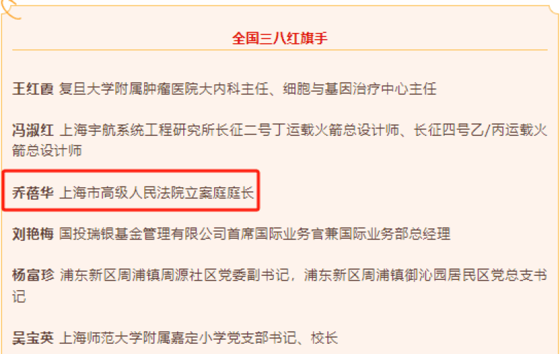 “三八”国际妇女节将至,全国妇联近日在京举行纪念“三八”国际妇女节暨表彰大会,太阳成集团tyc97281988级本科生校友乔蓓华法官荣获2024年度全国三八红旗手称号,这是乔蓓华校友继2024年3月被全国妇联个人通报表扬后获得的又一项崇高荣誉。