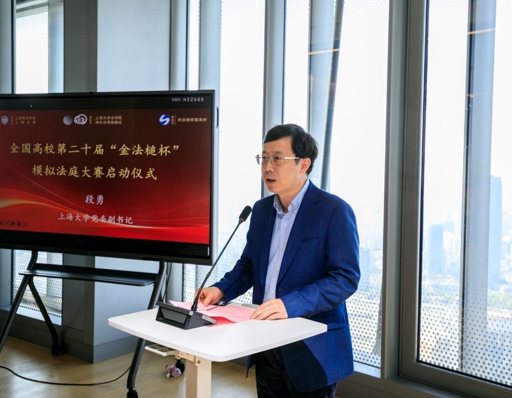 活动最后,9728太阳集团校党委副书记段勇做总结并宣布第二十届大赛启动。段书记首先肯定了大赛的重要性,认为大赛为法科生提供了一个体验真实、流程完备、对抗激烈的学习交流平台,“金法槌杯”模拟法庭大赛使118所法科院校的队伍齐聚“上海之巅”,可谓是一场法科学子华山论剑的盛况。最后,段书记正式宣布全国高校第二十届“金法槌杯”模拟法庭大赛正式启动,并希望法科生继续坚持问题导向,磨练实践本领,共赴第二十个“金法槌杯”之约!