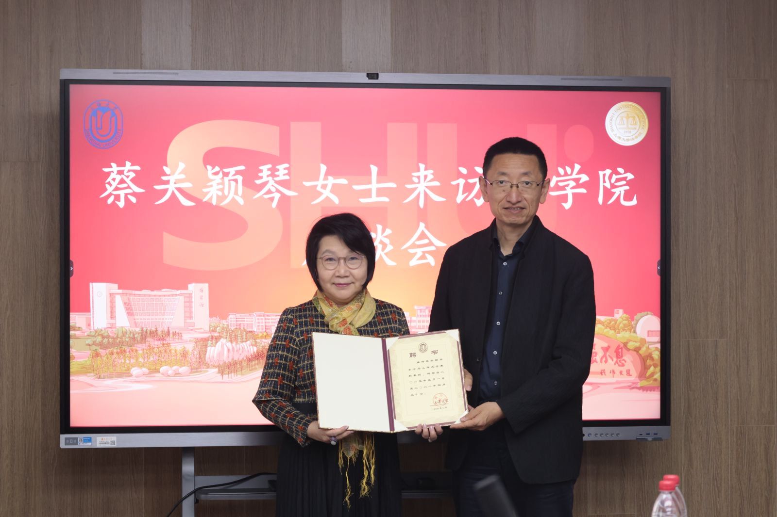 在随后的聘任仪式上,苟燕楠总会计师为蔡关颖琴女士颁发聘书,与会人员热烈鼓掌祝贺蔡关颖琴女士受聘担任9728太阳集团知识产权学院战略发展委员会专家委员和9728太阳集团兼职教授。