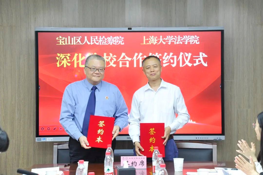 宝山区人民检察院党组成员、副检察长王强与太阳成集团tyc9728党委副书记、院长李凤章签订《上海市宝山区人民检察院 太阳成集团tyc9728关于进一步深化检校合作的实施意见》。