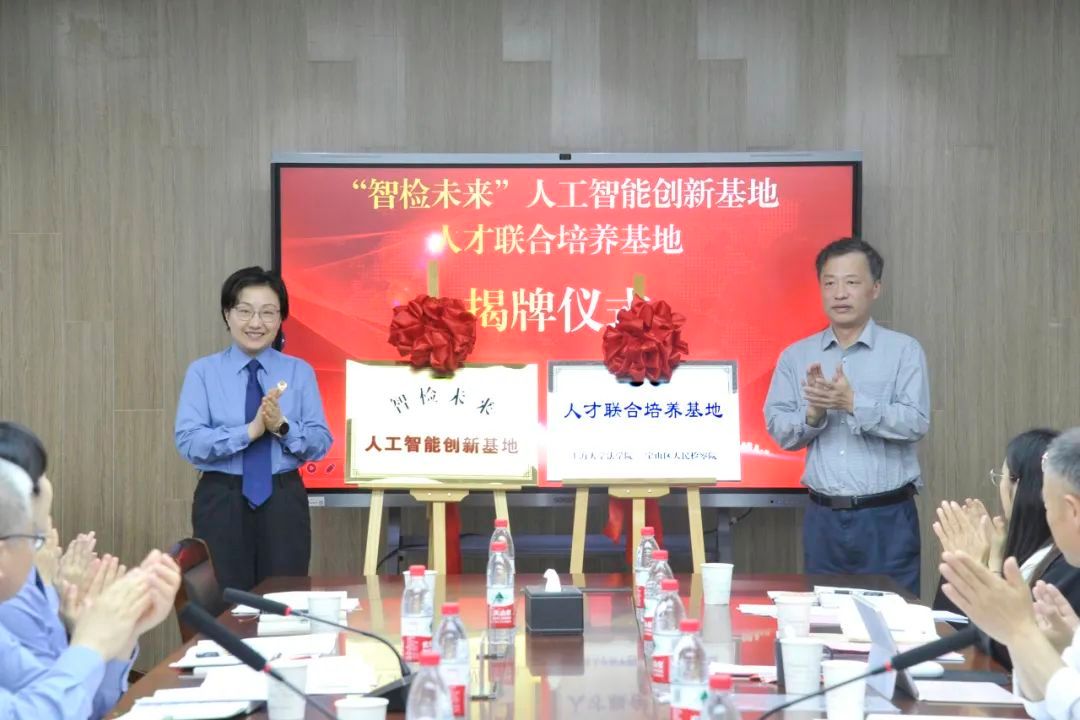 宝山区人民检察院党组书记、检察长孙琳与太阳成集团tyc9728党委书记徐国明为“智检未来”人工智能创新基地、人才联合培养基地揭牌。