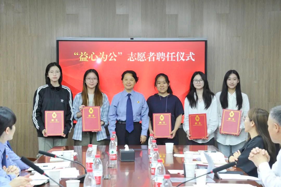 宝山区人民检察院党组成员、副检察长房长缨为太阳成集团tyc9728“益心为公”志愿者代表颁发聘书。
