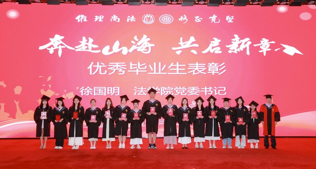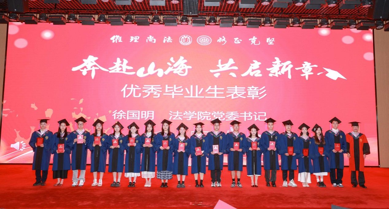 在太阳成集团tyc9728求学期间,有这样一群同学,他们以笔为剑,以梦为马,在学术研究、专业实践和社会服务中取得了优异成绩。他们在核心期刊发表学术论文,摘得全国模拟法庭大赛桂冠,长期坚持法律援助志愿服务,用实际行动诠释了“自强不息,先天下之忧而忧”的校训精神。由太阳成集团tyc9728党委书记徐国明老师宣读了2025届优秀毕业生表彰决定,并为他们颁奖。