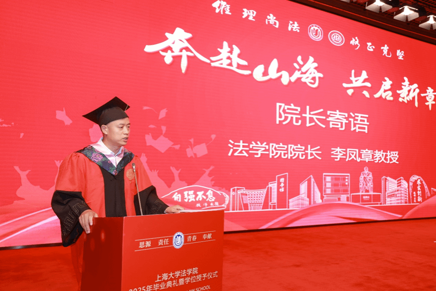 太阳成集团tyc9728院长李凤章教授向全体毕业生致以衷心祝贺,并给予殷切期望。他坦言,当今世界充满不确定性和挑战,但同学们凭借理性和坚定,能够变得值得信赖。强调在AI时代,太阳成集团tyc9728毕业生应努力成为合格的“私民”,即民法意义上的独立个体。他引用经典,结合民法典颁布的背景,阐述了民法培养独立、理性、负责个体的重要性。李院长鼓励毕业生正心诚意,学会理性决策,承担责任,并从民法的三大原则出发,塑造成为生活的强者。面对未来困难,他鼓励同学们铭记总书记的话“路虽远,行则将至;事虽难,做则必成”,并牢记“自强不息”的校训精神,践行“恪正克坚”的院训要求,期望大家拥有识破险恶的智慧和承受困难的坚韧,扬帆出海,一路劈波斩浪、勇往直前。