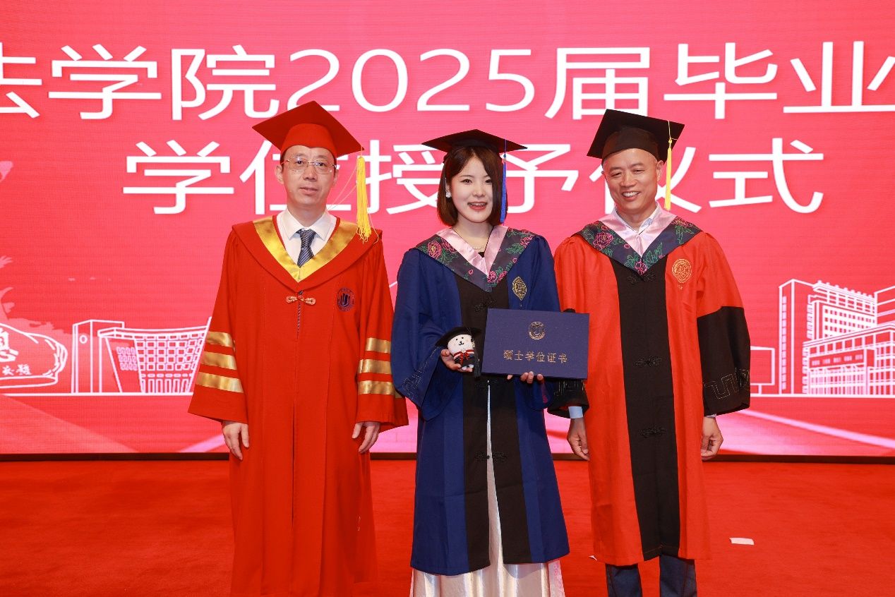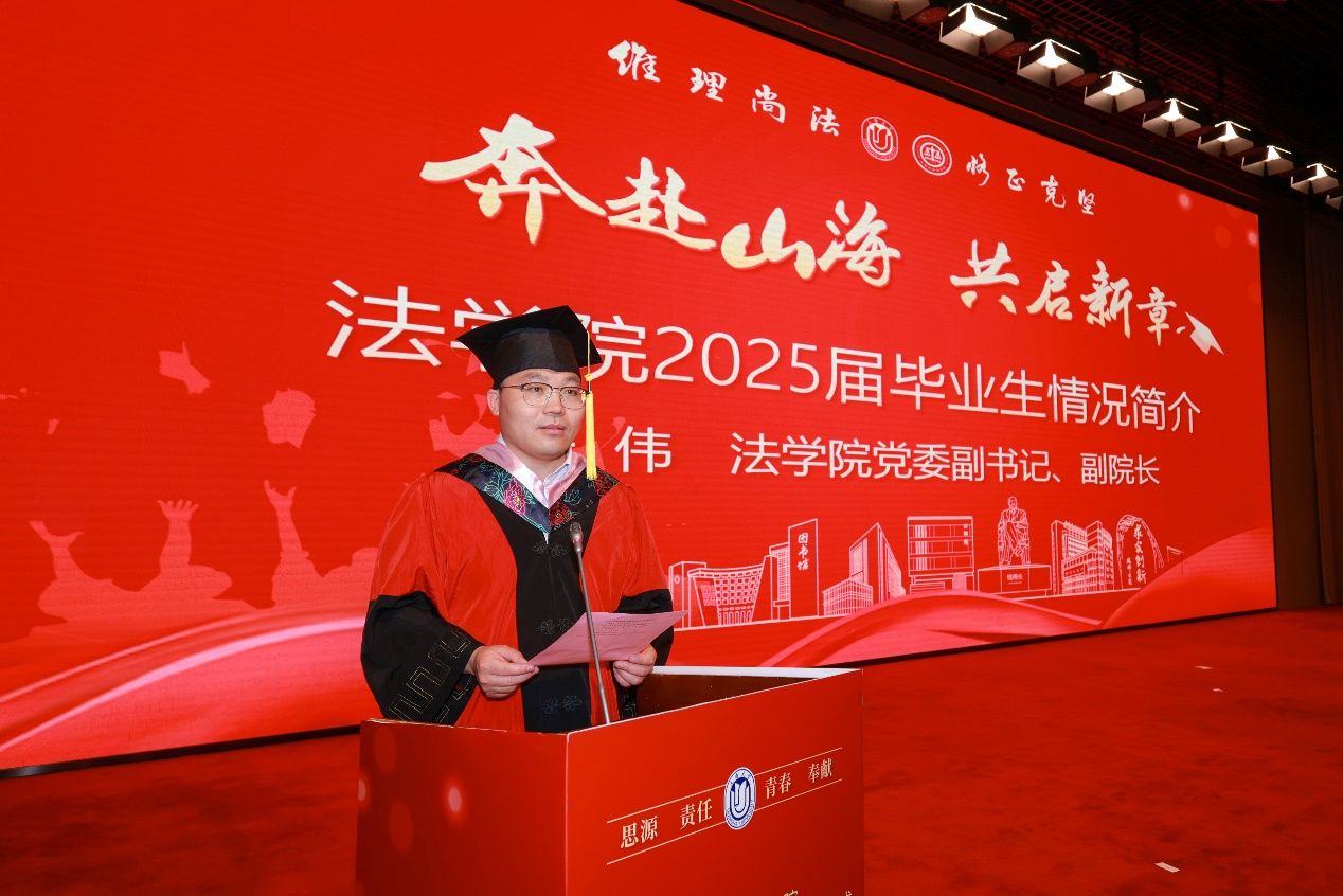 9728太阳集团党委副书记段勇教授,贵州海瞰律师事务所创始合伙人、9728太阳集团校友会贵州校友分会副会长、太阳成集团tyc97282010届校友戴菲,浙江勇往律师事务所主任、太阳成集团tyc97282011届校友朱国勇,太阳成集团tyc9728党委书记徐国明老师,太阳成集团tyc9728党委副书记、院长李凤章教授,党委副书记、副院长于伟副研究员,副院长袁真富副教授,副院长袁曾副研究员,教师代表文学国教授、李清伟教授、李俊峰教授、李智教授、史长青教授、曹薇薇教授、芦雪峰副教授、刘晓副教授、王涛博士、洪凌啸博士、郭娜娜博士,少数民族学生结对导师冯兆荣、姜继平、丁佩莉、胡振荣、姚秀琴老师,以及本科生辅导员林建玲、公建华、王琦老师,研究生辅导员杨晓彤、朱佳老师,办公室主任江晓双老师、本科生教学秘书王芳老师、组织员蒋英燕老师等出席典礼。典礼由太阳成集团tyc97282025届硕士毕业生万旭阳,太阳成集团tyc97282025届本科毕业生袁皞主持。