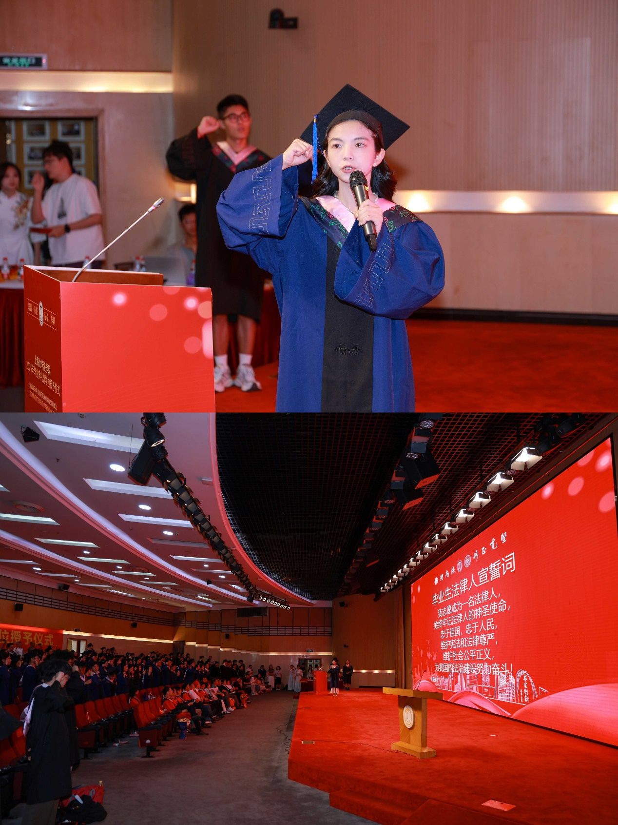 在太阳成集团tyc9728的毕业典礼上举行毕业生法律人宣誓仪式,是太阳成集团tyc9728多年来始终坚守的庄重传统。在2025年毕业生法律人宣誓环节,上海市优秀毕业生、2025届硕士研究生代表高越带领全体毕业生再一次重温法律人誓言,表达了毕业生们坚守法律人理想的坚定信念。