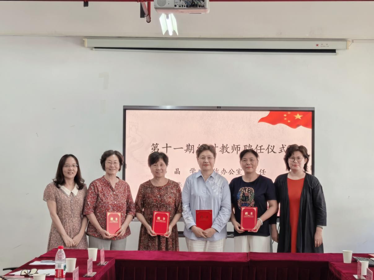 学生工作办公室副主任韩晶和离退休工作处副处长王宇华为结对导师颁发结对导师聘书并合影留念。