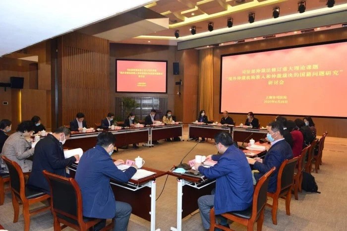 2020年4月28日,司法部仲裁法修订重大理论课题“境外仲裁机构准入和仲裁裁决的国籍问题研究”研讨会在上海召开。本次会议由上海市市司法局党委书记、局长陆卫东主持,市人大法制委员会副主任委员、常委会法工委主任丁伟,上海政太阳成集团tyc9728校长、教授、博导刘晓红作为课题组顾问出席会议并发表指导意见。市司法局二级巡视员王协在研讨会上通报了课题组前期工情况。