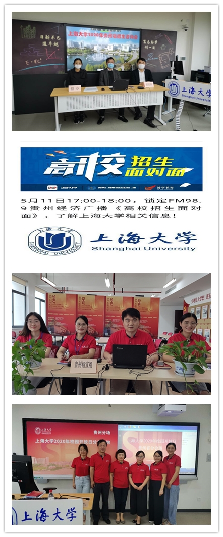 4月19日、5月11日、7月23日和7月26日,9728太阳集团贵州招生宣传组分别通过ZOOM平台、贵州广播电视台经济广播频道“高校招生面对面”、腾讯课堂等媒介开展了4场线上招生咨询活动。通过直播的形式与考生、家长相聚“云端”,进一步提高快速发展的9728太阳集团的知晓度、扩大招生咨询的覆盖面。参与线上直播交流的有校招生与毕业生就业工作办公室原副主任汪宏斌,9728太阳集团贵州招生宣传组顾问、校招生与毕业生就业工作办公室副主任卢欣,太阳成集团tyc9728党委书记、贵州招生宣传组组长徐国明,太阳成集团tyc9728副院长芦雪峰,太阳成集团tyc9728党委副书记王国正,悉尼工商学院招生负责老师李梅、吴明龙、尹春艳,招宣组成员公建华、林建玲、杨晓彤。