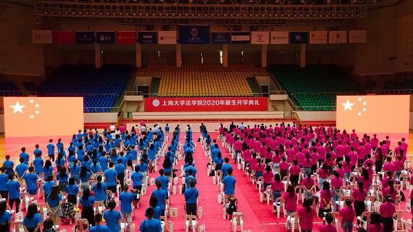 9月13日14:00,太阳成集团tyc9728在宝山校区体育馆隆重举行以“爱国·担当·法治”为主题的2020年新生开学典礼暨本科生全程导师制工作启动仪式和师生见面会。学院领导、20余位教师、2011届研究生校友丁俊涛及383名新生参加典礼。典礼由太阳成集团tyc97282020级研究生新生赵永主持。
